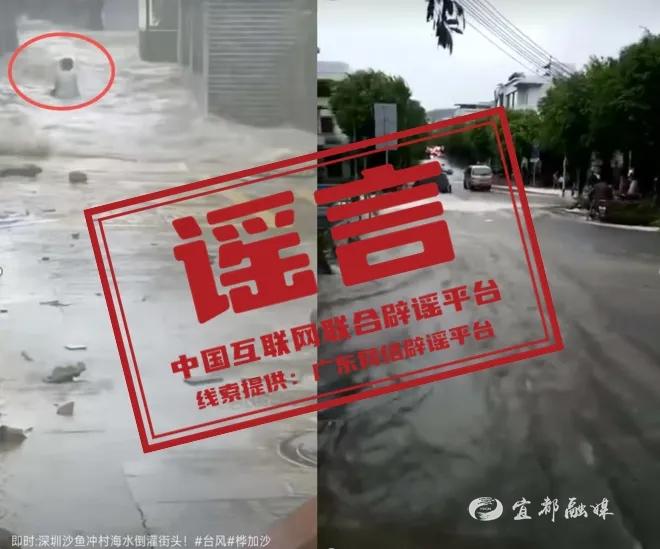 谣 言 广州番禺石楼镇遭严重水浸?海水倒灌进深圳沙鱼涌村冲倒一人?