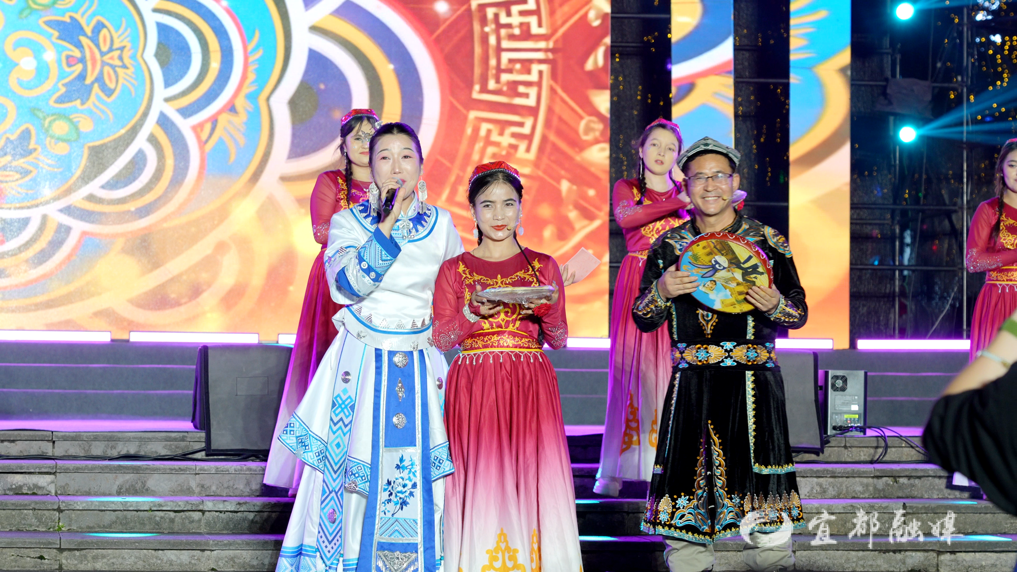 活动中还特别设置了知识问答与人物采访环节,巧妙融入沙画猜谜互动,寓教于乐地普及中秋文化、长江禁捕、民族团结等知识。来自中国台湾的企业家周樑成、回乡创业的“龙芽白菜”培育者杜永军,以及将彝族文化融入心理咨询事业的周子越等嘉宾分享了他们在宜都创业安家、促进交流交融的感人故事,凸显了本地各族群众共建共享和谐家园的生动实践。