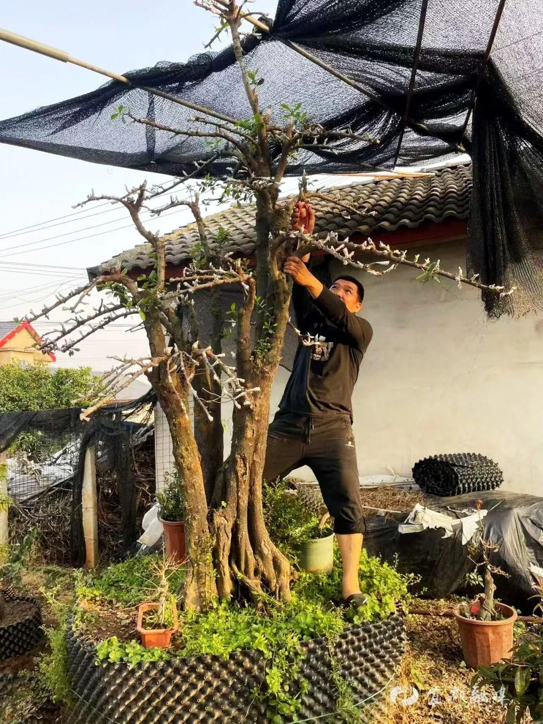 十几年的坚持与积累,让“二哥盆景园”实现了跨越式发展:从最初单一的杂木盆景,拓展到花果类、珍稀树种等多个品类;从“埋头创作”到形成“寻觅素材-精心创作-市场推广”的良性模式。如今,盆景园每年制作销售盆景超1000盆,成为南桥村颇具特色的乡村产业。