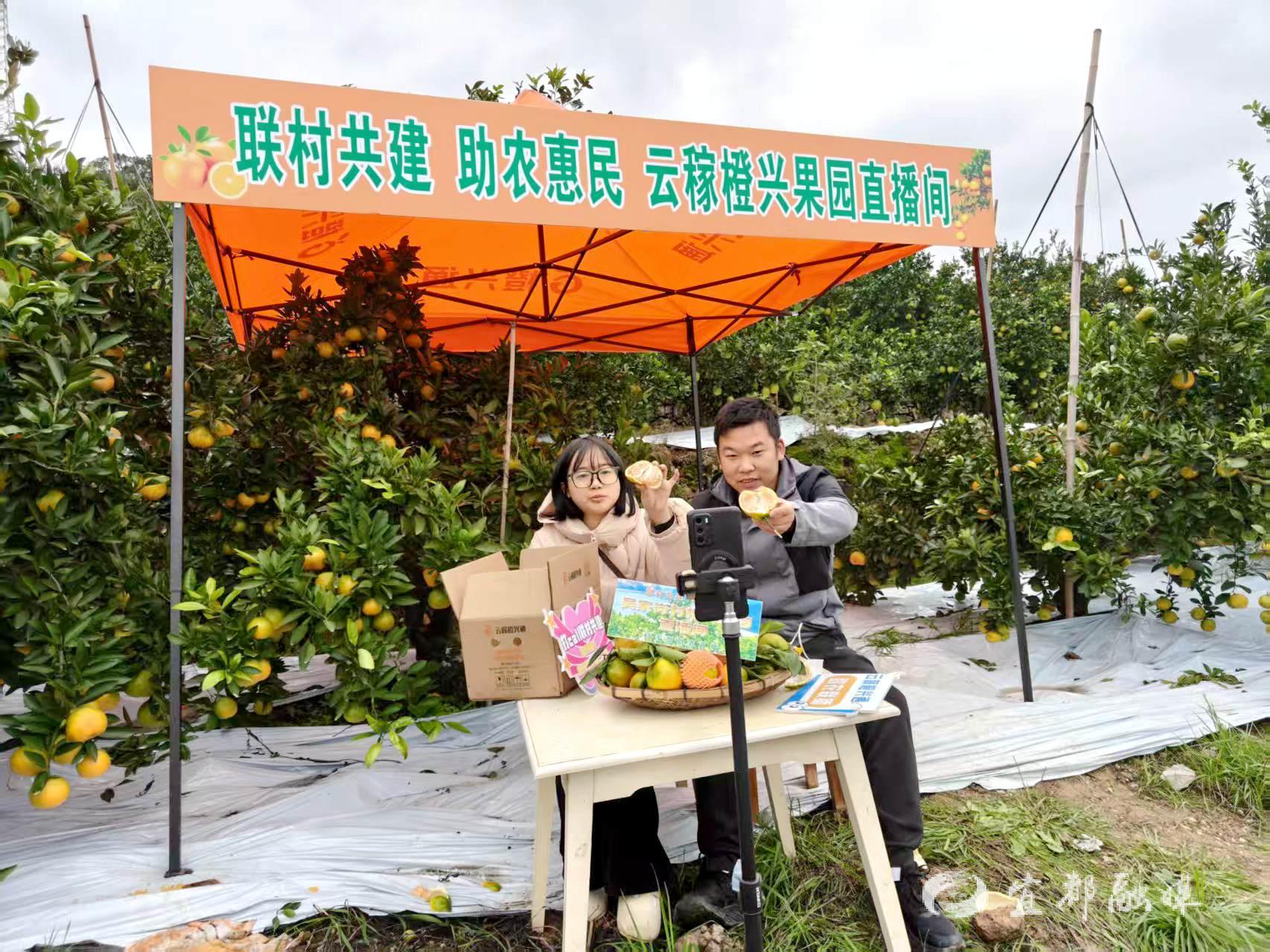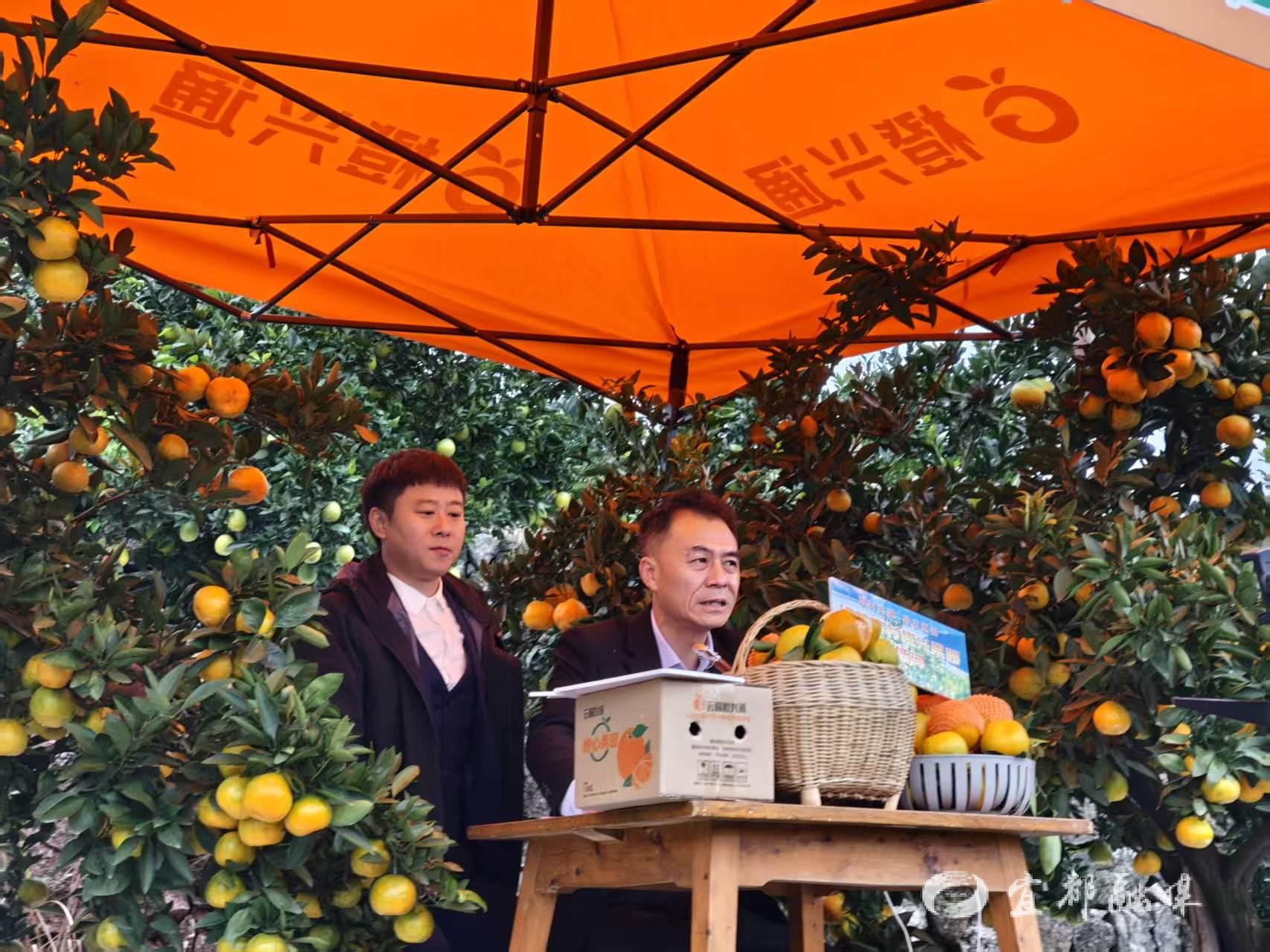 宜都融媒讯(通讯员 鄢博)10月21日下午,宜都市红花套镇南桥村精品园内人声鼎沸、热闹非凡。一场以“联村共建,助农惠民,我为宜都蜜柑代言”为主题的助农直播活动火热开启,正式拉开当地柑橘网销季的序幕。