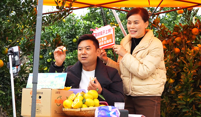 红花套镇南桥村党总支书记李玉珍笑着说:“我平时是一个人(直)播,是单打独斗,我们推广的关注度和流量都会少一点。今天一起直播,我们就会让更多的人能够关注到我们红花套所有的柑橘,也可以引进更多的收购商到我们这里(来),帮助我们的老百姓销售柑橘。我们刚开播,就(已经)下了几十单。”
