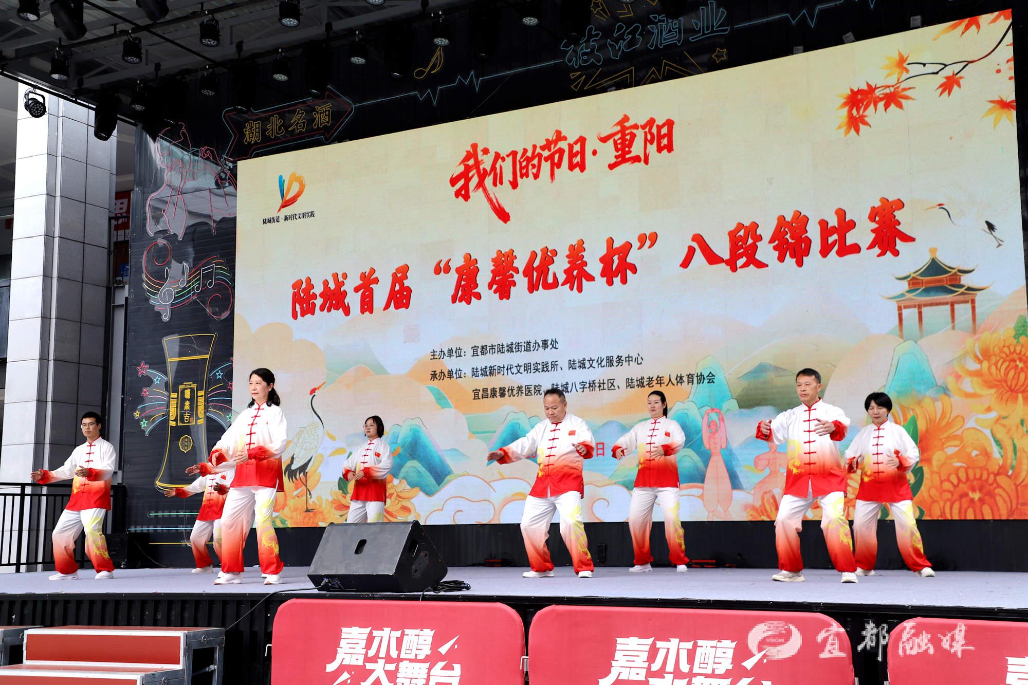 宜都融媒讯(通讯员 黄瑞)10月27日下午,秋日暖阳洒满嘉木醇广场,陆城街道“我们的节日•重阳”暨首届“康馨优养杯”八段锦比赛在此热闹举办。来自全处的9支参赛队、1支表演队近200名选手齐聚现场,以行云流水的招式展现传统健身魅力与老年群体风采。