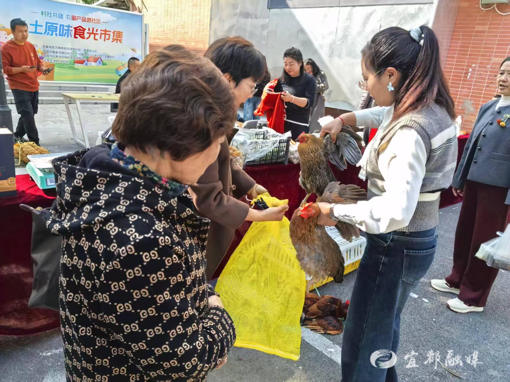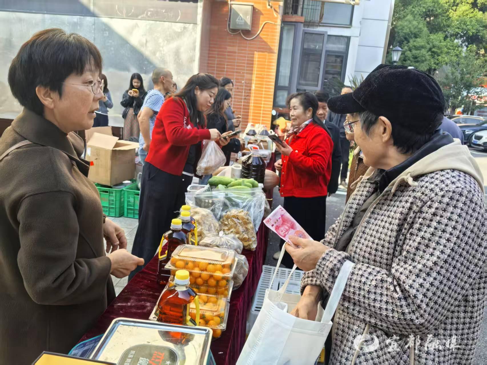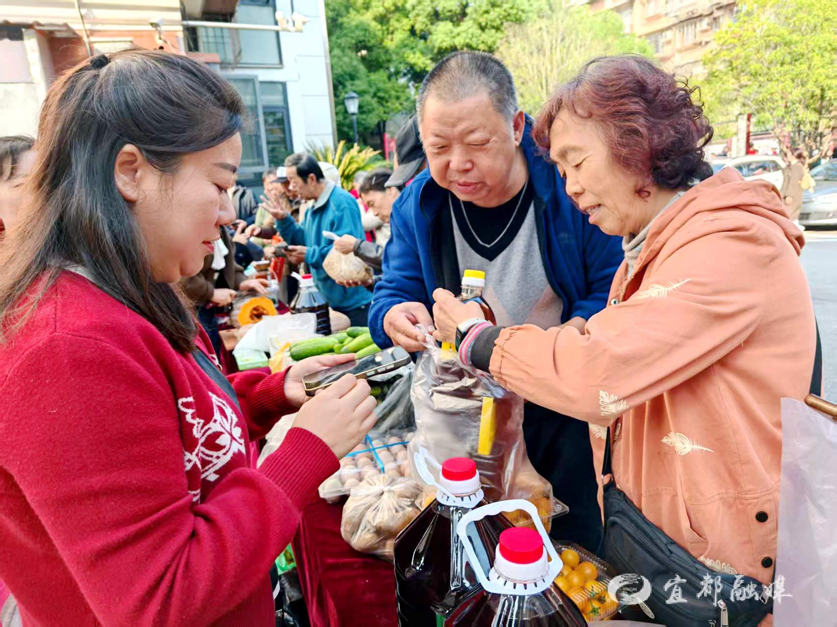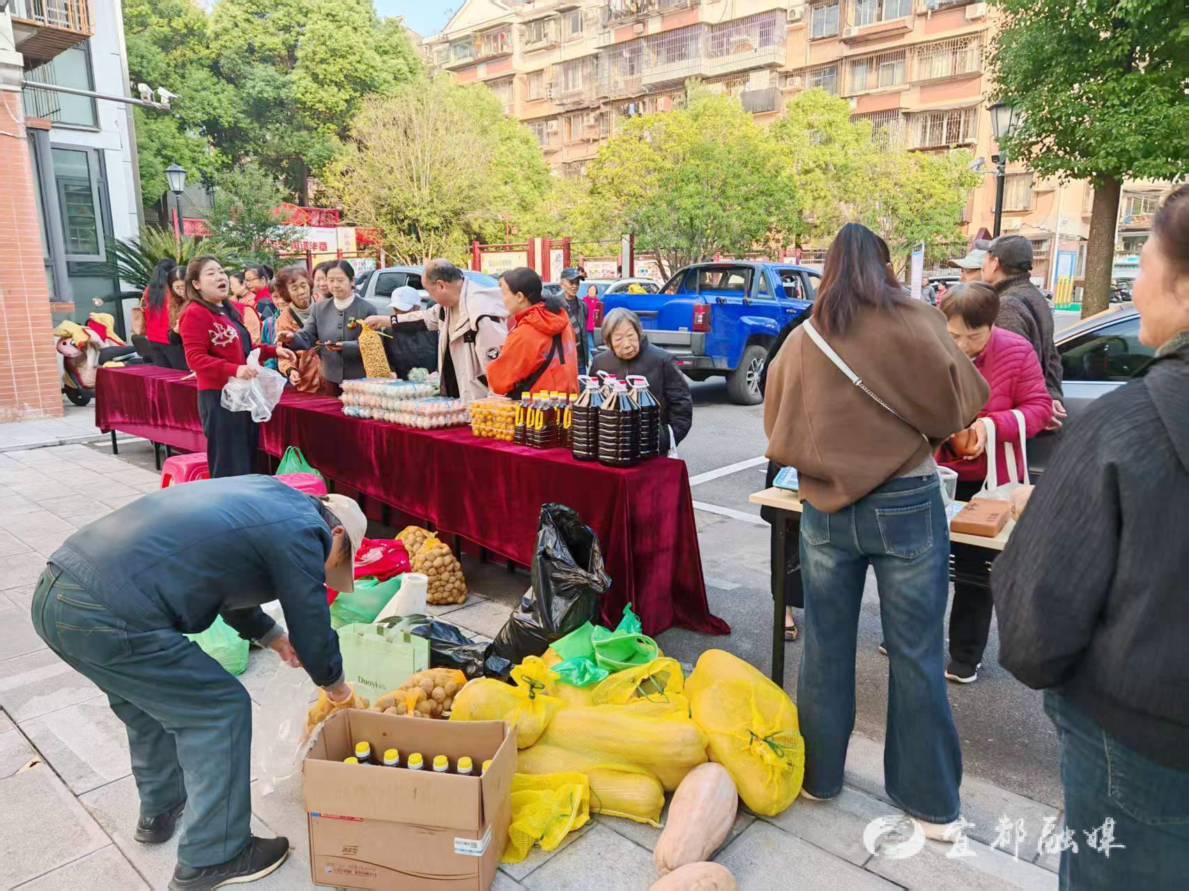 货车一抵达港务社区筑梦广场,就被居民团团围住,选购声此起彼伏:“这南瓜颜色正,我买一个!”“花生看着就地道,来一袋!”“香油看着纯正,给我两瓶!”现场热销的农特产品丰富多样,既有南瓜、土豆、新鲜黄瓜、小番茄等生鲜,也有菜籽油、香油、辣椒酱、鸡蛋、土鸡、蜂蜜,还有柴火豆腐、辣椒皮干、橡子豆腐等干货。仅一上午,这些深山好物便被抢购一空,聂家河镇山上四村(白家淌村、凤凰池村、王家坪村、丁家坪村)总销售额近万元。