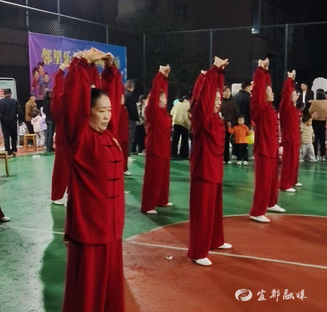 夜幕降临,活动氛围再掀高潮。太极表演如期登场,表演者身着素雅练功服,在柔和的灯光下缓缓起势。抬手如行云流水,落步似稳如磐石,一招一式舒展从容,将太极的刚柔并济展现得淋漓尽致。围观的老年业主纷纷驻足欣赏,有的轻声赞叹,有的不自觉跟着比画,现场宁静而祥和,为重阳佳节增添了一份独特的传统文化韵味。