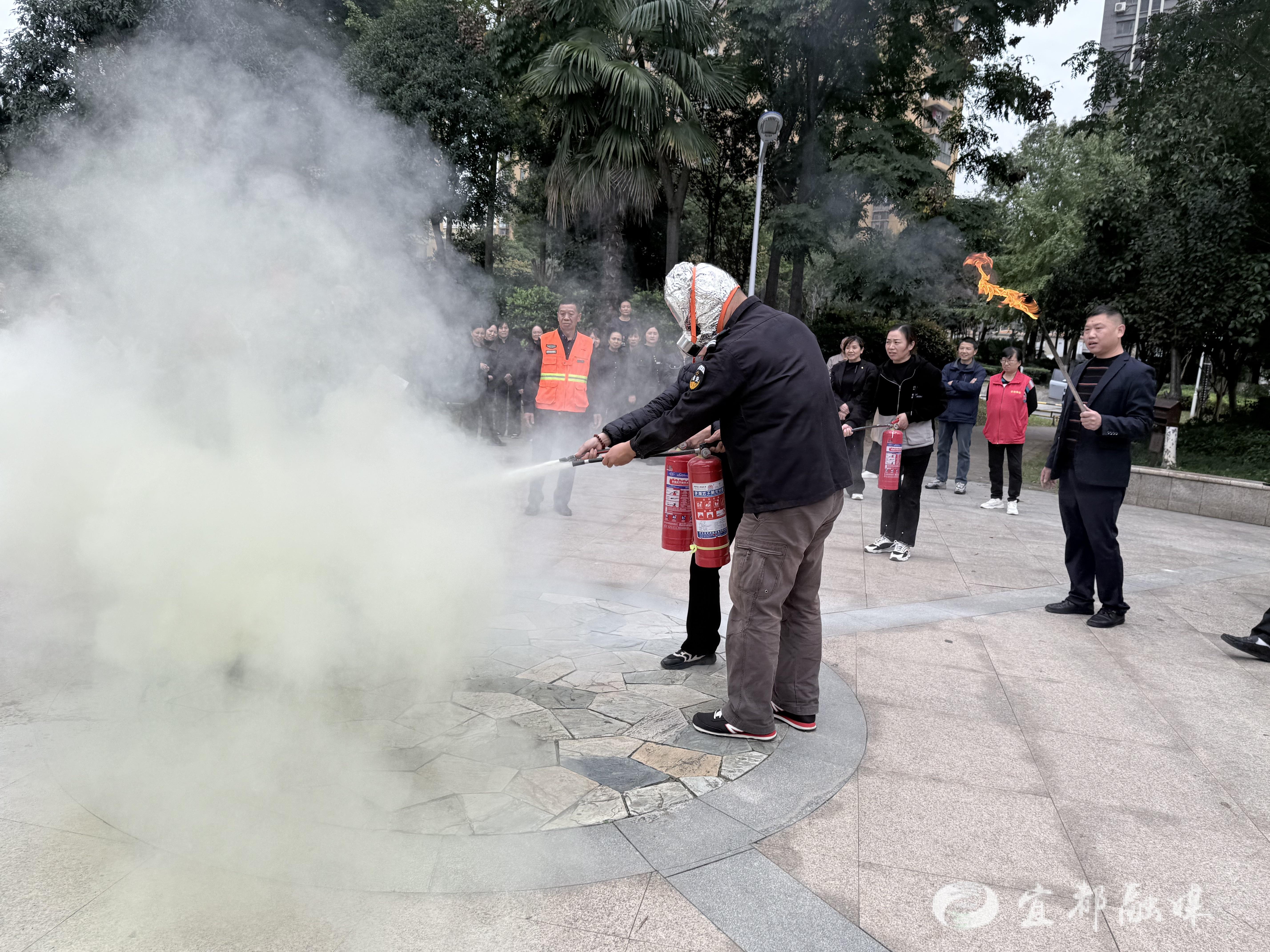 宜都融媒讯(通讯员 肖懿娜 黄梦梦 何伟)11月12日,陆城清江社区联合合田物业在雅斯国际广场小区开展消防演练活动,70余名居民、物业工作人员参与其中,沉浸式学习消防安全知识与实操技能。