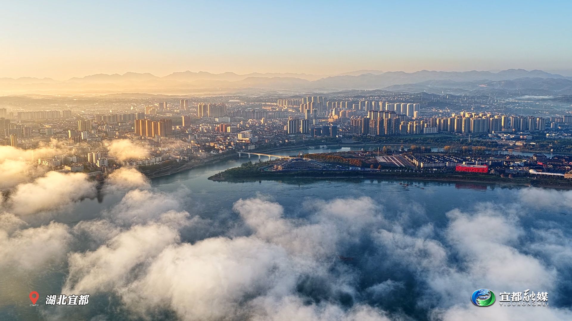 今日(11月25日)清晨,宜都市被一场轻柔的雾霭悄然笼罩,清江与长江两江水汽交融漫溢,将整座城市装扮成一幅灵动的山水画卷。