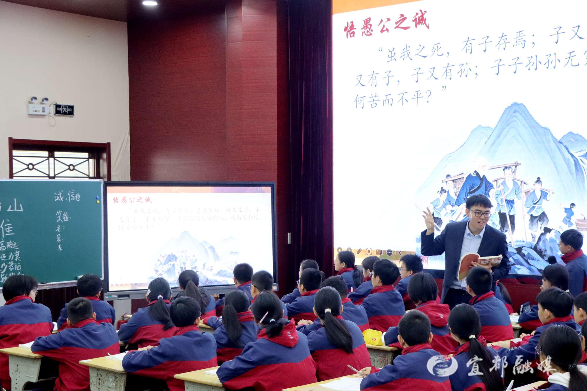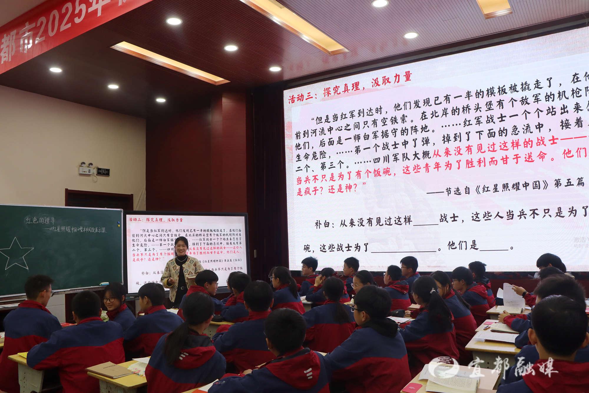 宜都融媒讯(通讯员 郭海璎 熊章辉)12月3日,宜都市2025年初中语文“生动课堂”教学展评活动在陆城一中举行。本次活动以“聚焦语文‘生动课堂’,推进单元整体教学”为主题,集中展示8节精彩课例,全面呈现全市初中语文教师在新课标与新教材实践中的探索成果,吸引全市60余名语文教师参与观摩。