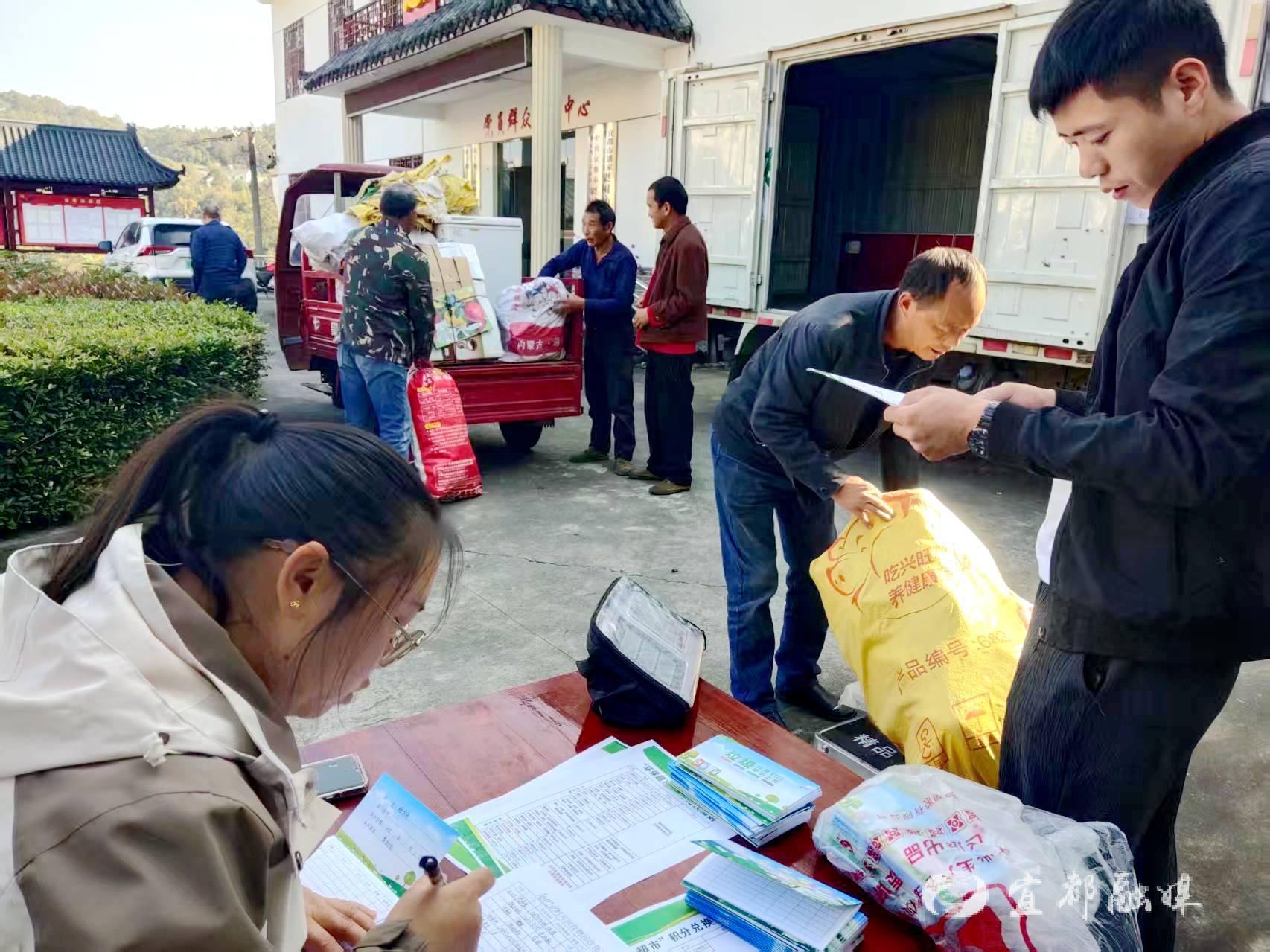 宜都融媒讯(通讯员 胡安宇)12月5日,潘家湾土家族乡栗树垴村的“环保超市”里人头攒动,村民们拎着旧衣服、农药包装等物品有序排队,称重、积分、兑换一气呵成。