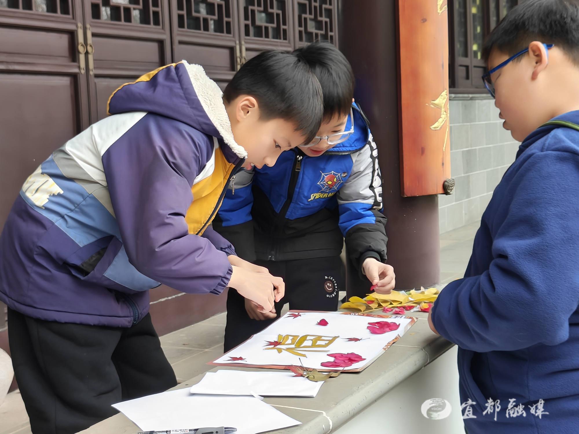 在丹阳书院的课堂上,吴天祥小组的志愿者不仅教孩子们树叶贴画,更将本地文化融入其中。在参观书院、了解王永彬生平的过程中,志愿者们用生动的语言,将“围炉夜话”的故事娓娓道来,让孩子们感受先贤的思想光华,让传统文化的种子在他们心中生根发芽。