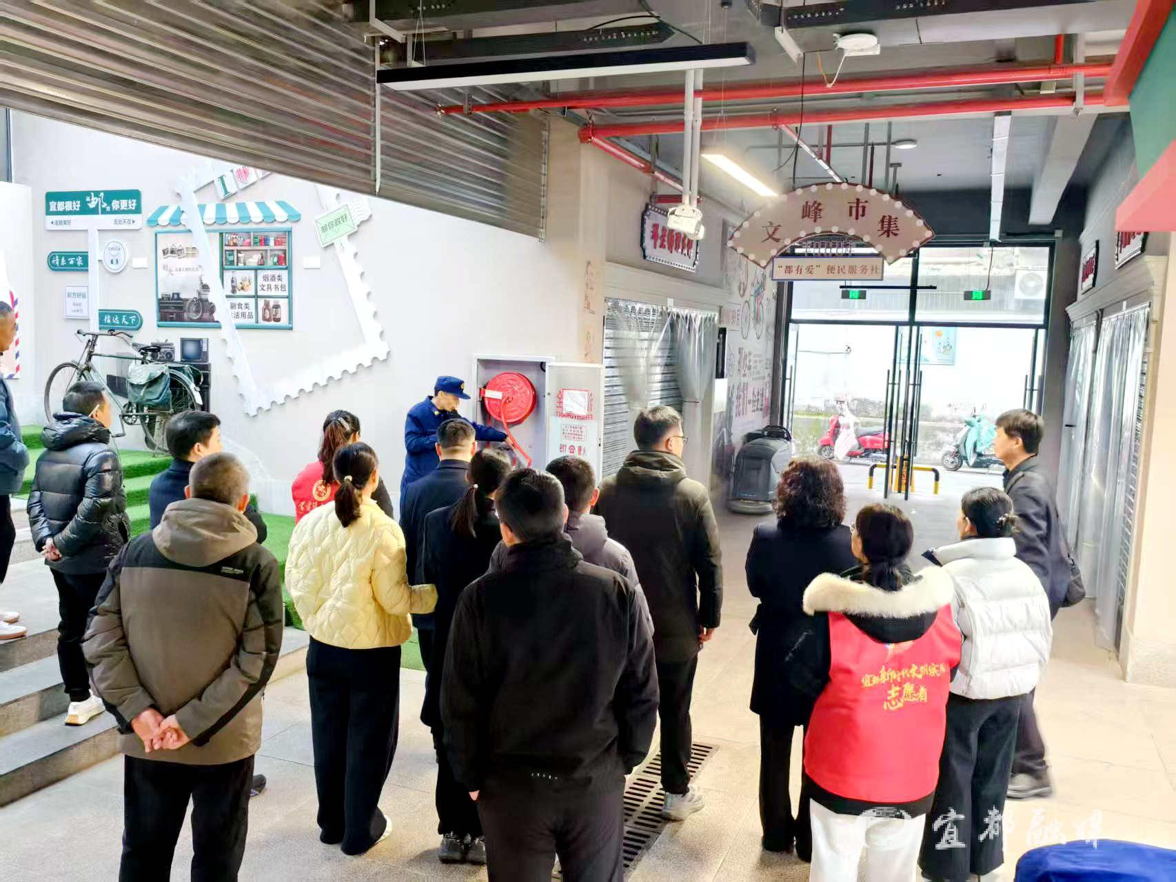 紧急疏散环节,模拟火灾警报响起后,市场管理人员立即启动应急预案,快速引导商户、顾客及居民沿预定安全路线有序撤离至指定集合区域,整个过程紧张高效,充分检验了市集应急通道的畅通性和应急组织调度能力。