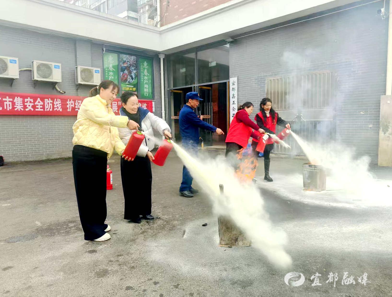 宜都融媒讯(通讯员 刘晓玲)12月22日下午,一场主题为“筑市集安全防线 护经营平安发展”的消防应急演练在文峰市集顺利举行。