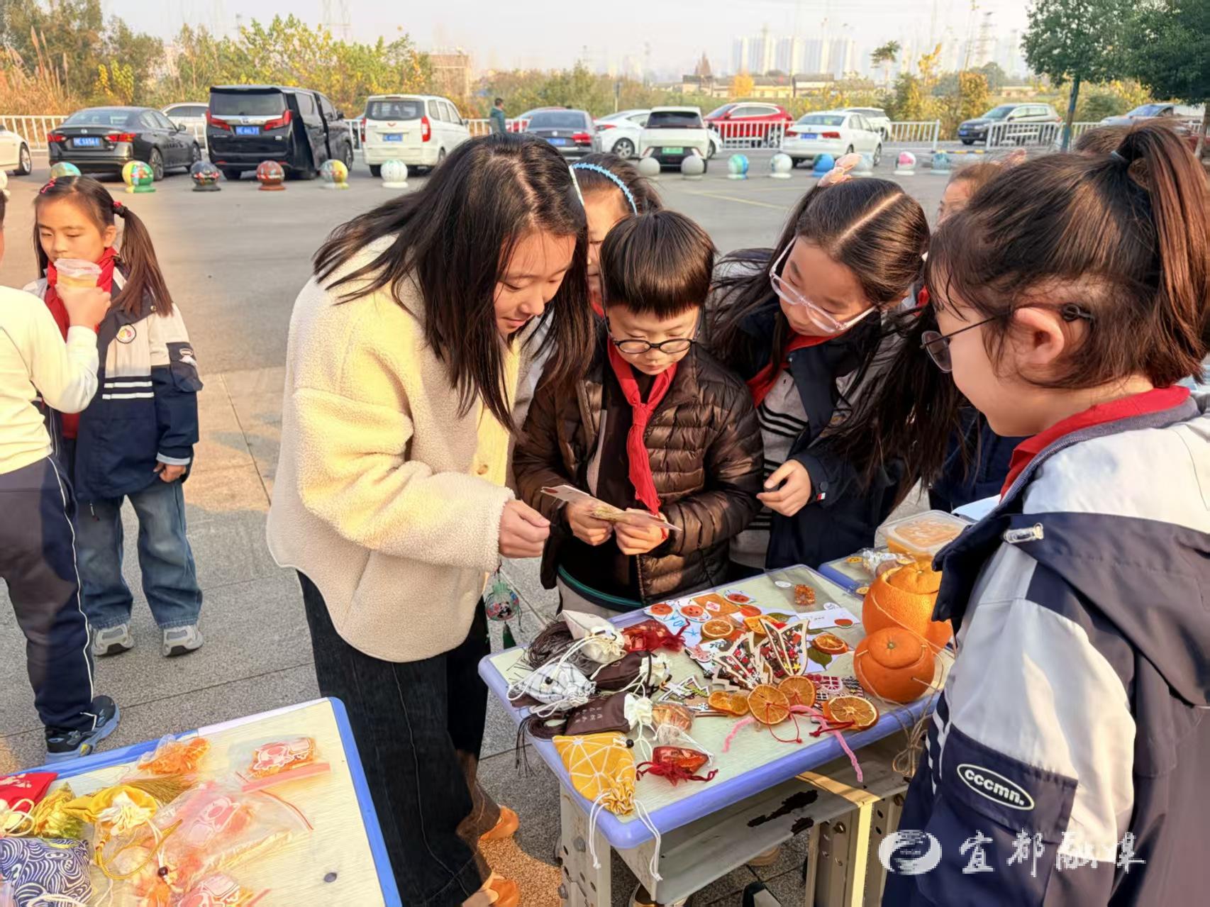 宜都融媒讯(通讯员 程默)近日,高坝洲镇曾家岗村与宜都市创新实验学校联合开展了一堂别开生面的本土文化实践课。双方以乡村丰收的蜜柑为纽带,引导学生动手制作创意工艺品并举办校园义卖,成功探索出一条“助农增收”与“助学育人”深度融合的创新路径,让田间鲜果成为连接乡村振兴与素质教育发展的桥梁。