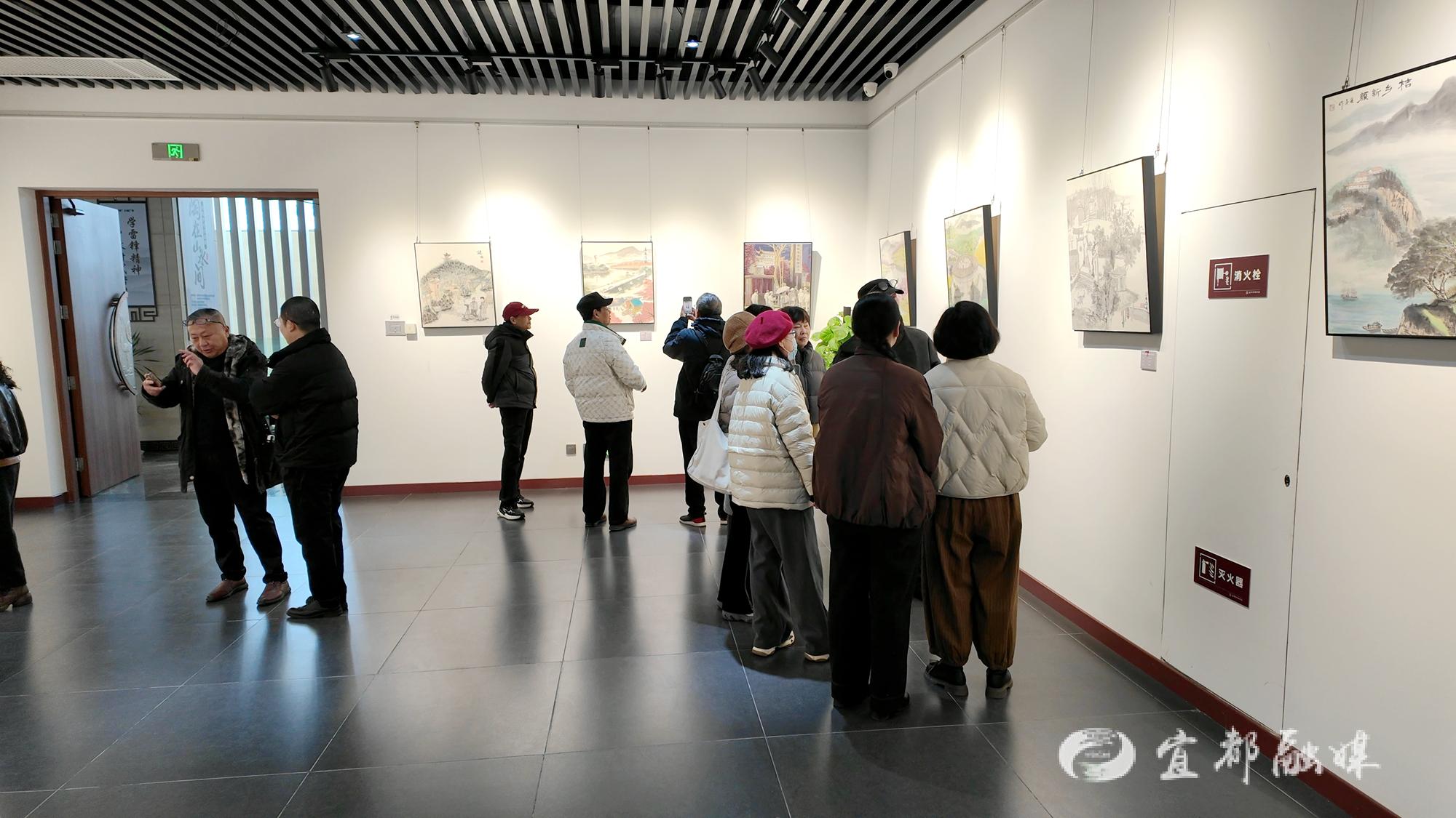 在非遗乡音板块,国画、油画、水彩等多种艺术形式集中呈现,宜都市美术家协会会员以美丽乡村与非遗为核心,将宜都的非遗元素、乡村风光凝于笔端,用色彩与线条描绘出乡村振兴的生动图景。