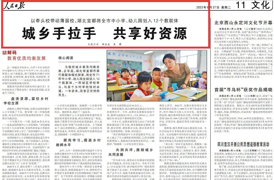 深化教育综合改革。高质量建设教联体,全市义务教育学校全部纳入8个教联体,在省内率先实现覆盖率100%,工作经验获教育部、省教育厅专题推介,被《人民日报》《人民教育》《中国教育报》等媒体报道。