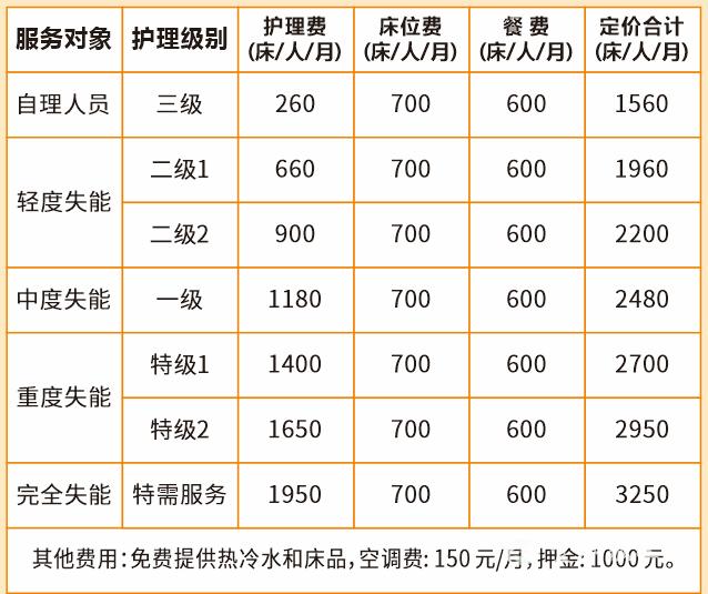 养老服务收费标准