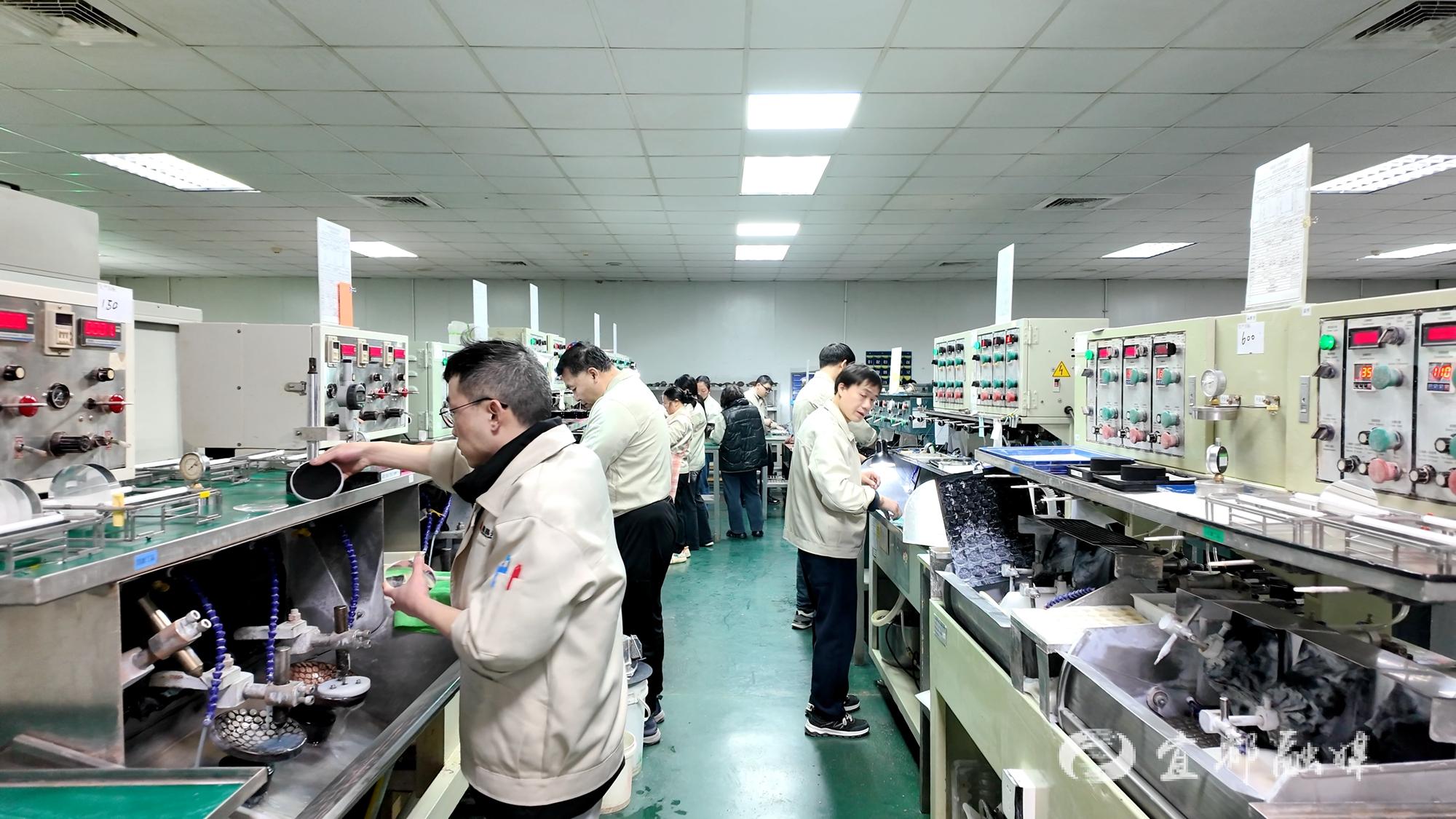 在龙昌光学的无尘车间内,智能化生产线高速运转,机械臂有序作业,工人们专注操作,正全力生产一批海外订单所需的光学镜片。经过切削、砂挂、研磨等九道精密工序,一片片高精度镜片在自动化产线上不断产出。这些产品后续将应用于影像记录、智能驾驶、医疗设备及安防系统等多个领域。自2011年落户宜都以来,龙昌光学持续专注于光学镜头及镜片的研发与制造。今年以来,企业订单饱满,生产线持续处于高负荷运转状态。
