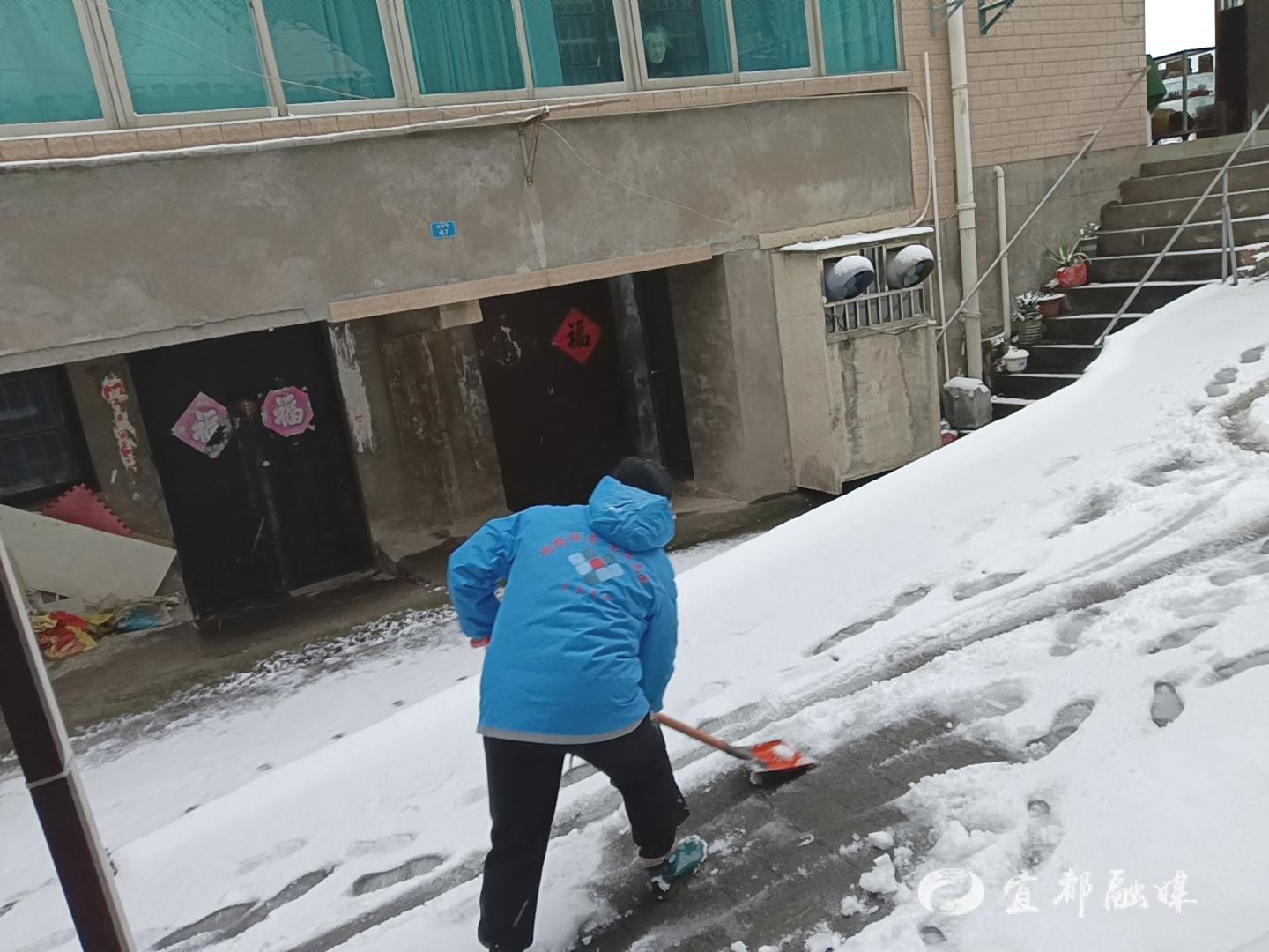 宜都融媒讯(通讯员 李玲玲)1月20日清晨,受强冷空气影响,我市出现降雪天气,给居民出行带来不便。陆城街道胜利社区迅速行动,组织党员志愿者和社区工作人员,针对辖区独居老人开展“雪中送暖”走访活动。