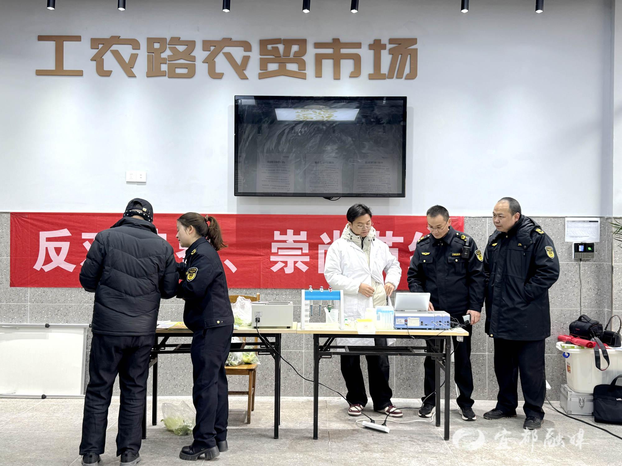当前正值群众采购年货、储备食材的高峰时段,农贸市场内熙熙攘攘、人头攒动,新鲜蔬果、禽肉蛋奶等食材琳琅满目。工作人员围绕群众日常消费重点,双管齐下开展服务:一方面随机抽取场内农产品经营户的蔬菜样品,熟练操作快检设备检测农残等关键指标,同步公示检测结果,既强化经营户规范经营意识,也让商户经营更有底气;另一方面主动邀请现场消费者送检采购食材,耐心指导参与检测流程,真正实现“群众点单、部门检测”的精准服务,让消费者买得安心、吃得放心。