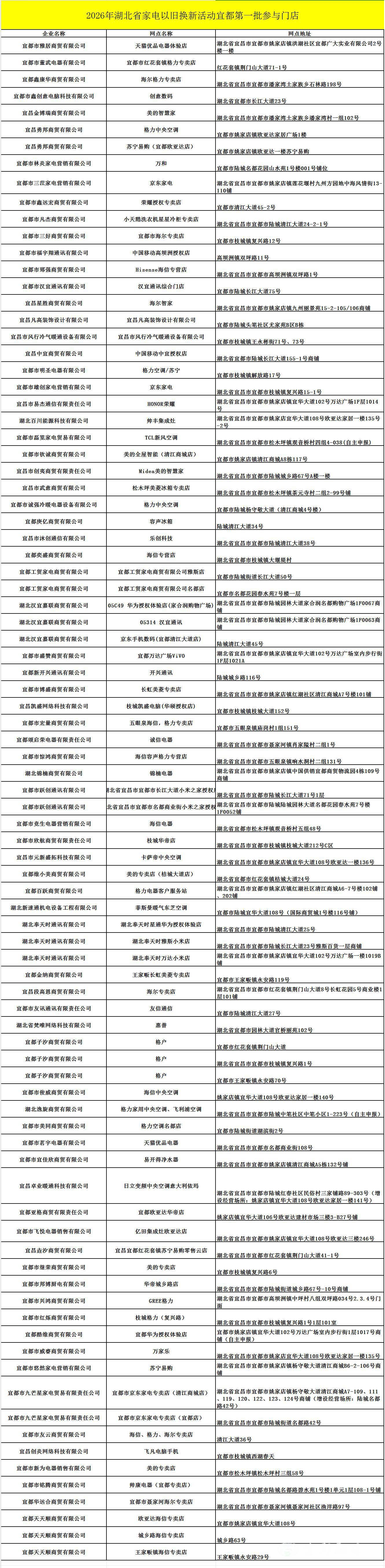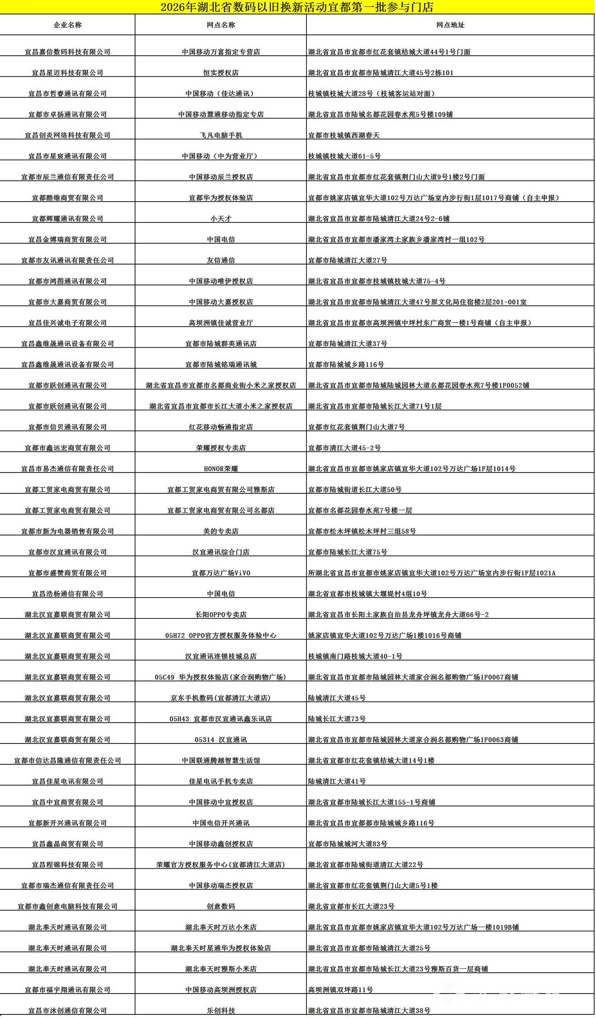 2026年湖北省数码以旧换新活动宜都第一批参与门店.xlsx