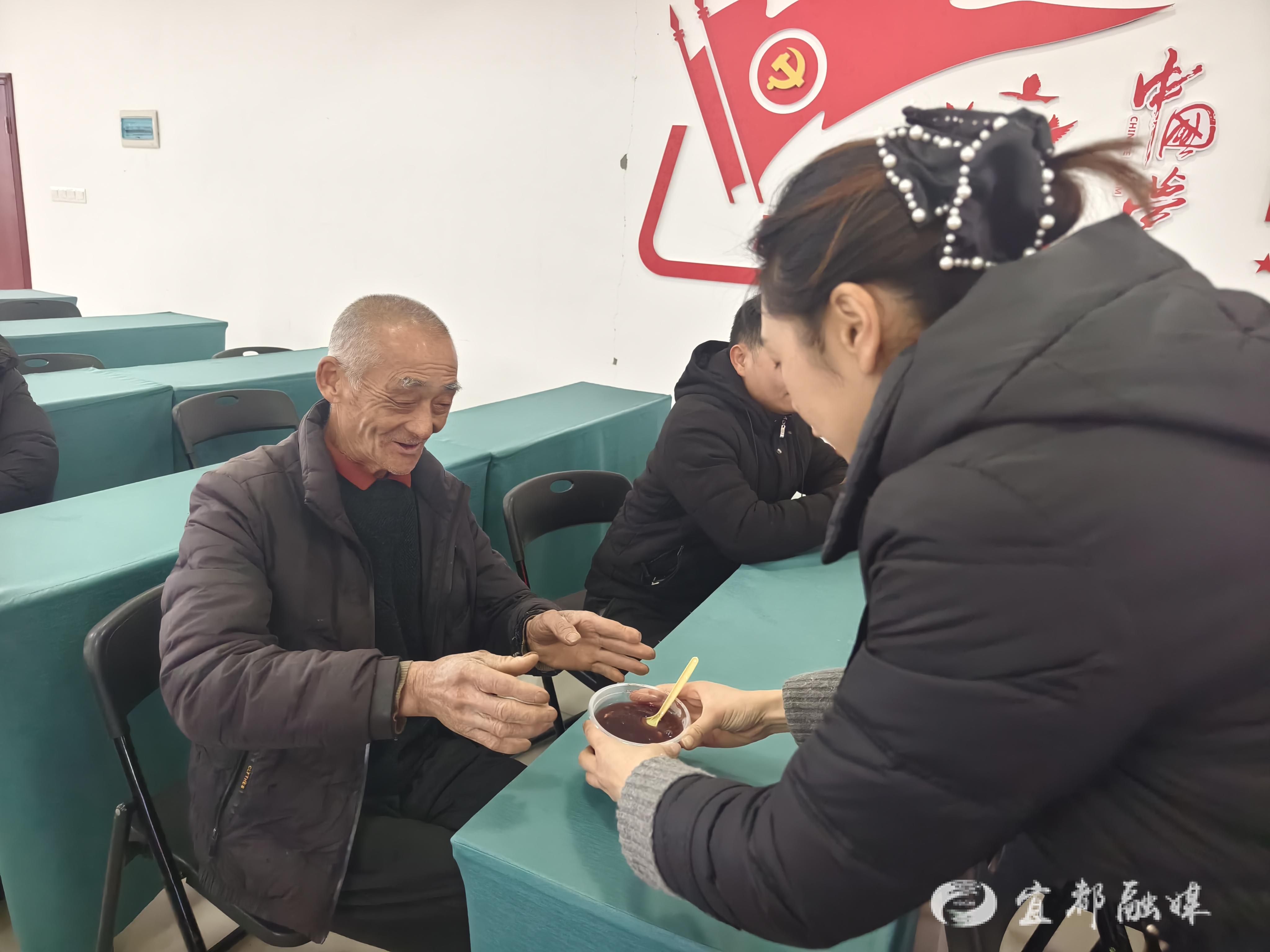 兑换积分后,志愿者们端上刚熬好的腊八粥。大家围坐一堂,品着甜粥,聊着家常,畅谈村里的新变化、新打算,欢声笑语中流淌着浓浓的归属感与凝聚力。