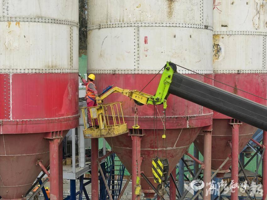 1月24日,2号拌合站16个粉料罐、2台混凝土搅拌机安装就位。