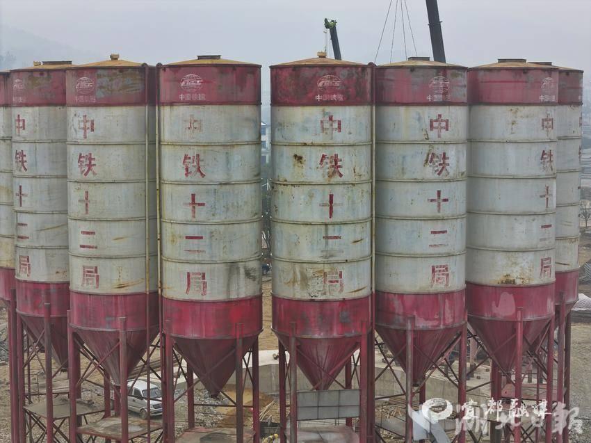 1月24日,湖北宜都。中铁十二局集团宜常铁路YCHBZQ-2标项目经理部2号拌合站16个粉料罐安装就位。该项目去年12月24日中标后,今年1月1日即开工建设2个拌合站、1个钢筋场,至今中标满月,所有项目推进有序。(通讯员 李亚隆)