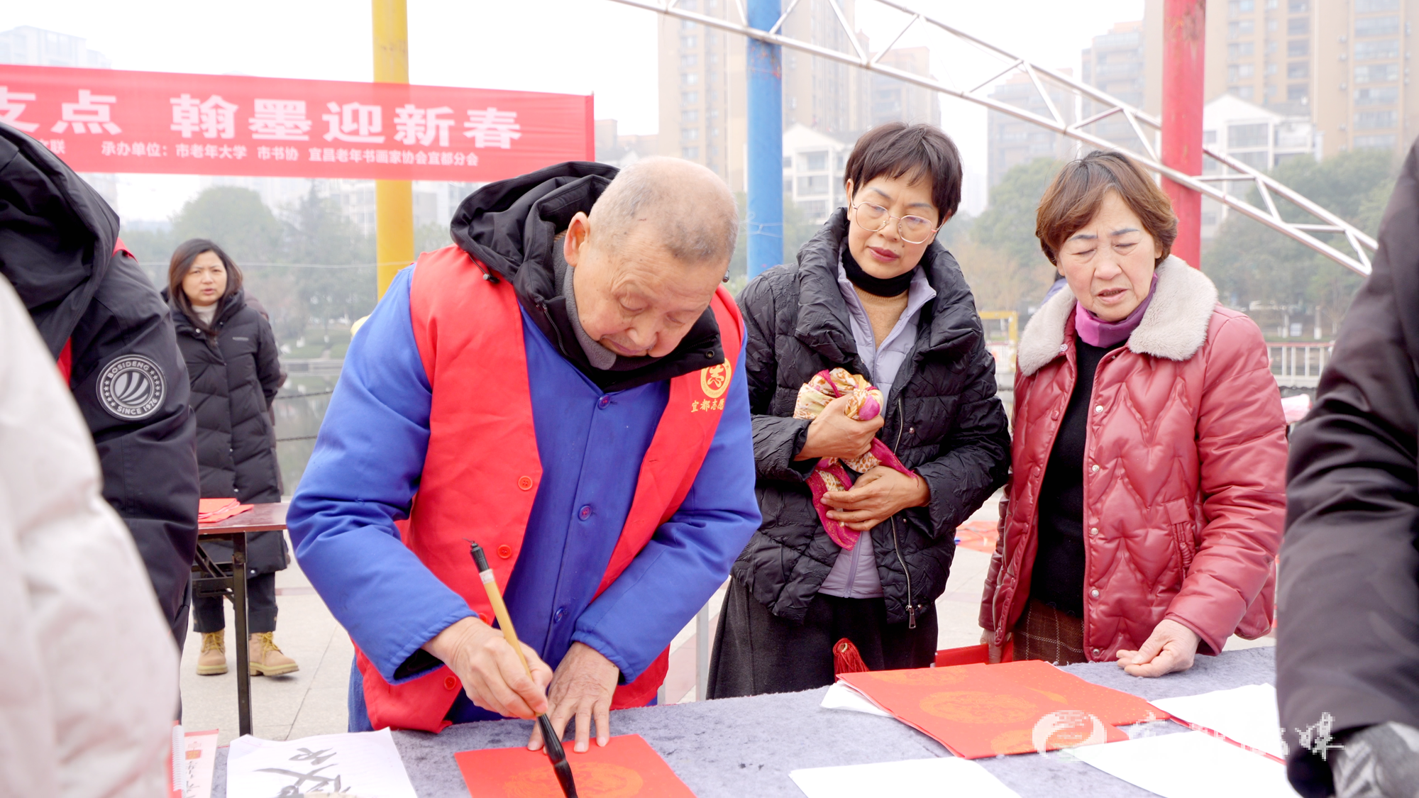 宜都融媒讯(记者 夏梦瑶 通讯员 陈秦)1月27日,由陆城街道、市委老干部局、市文联主办,市老年大学、市书法家协会、宜昌市书画家协会宜都市分会协办的迎新春义务送春联送祝福送温暖活动举行。近百名银发书法爱好者以笔为媒、以纸为笺,为居民群众送上新年祝福。