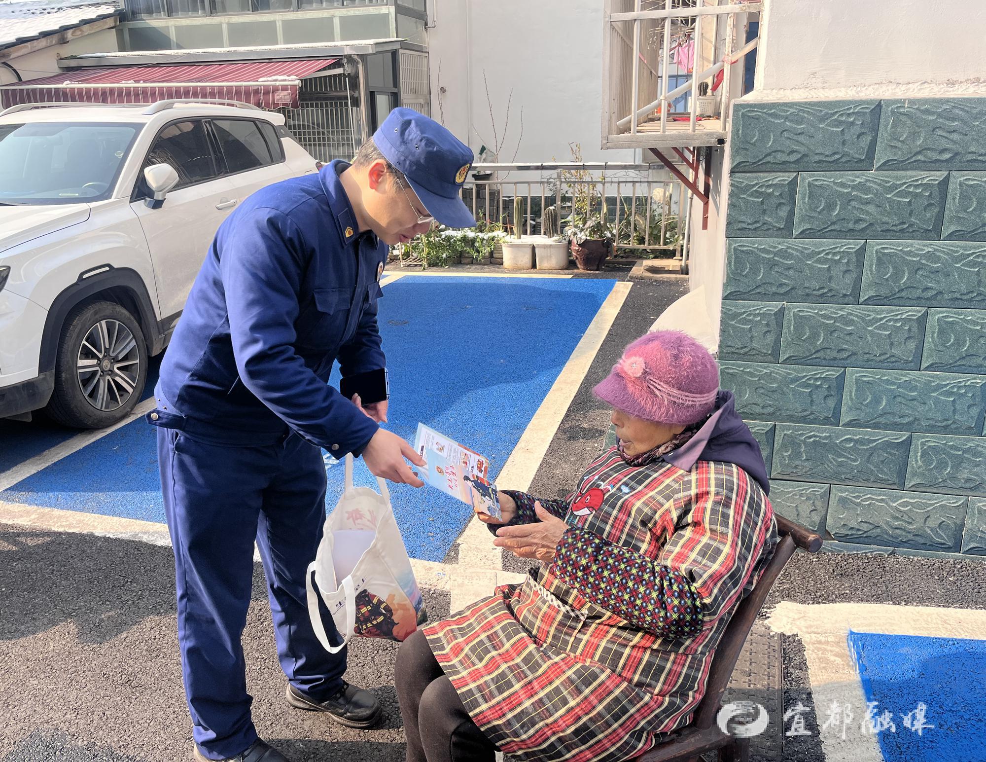 宜都融媒讯(通讯员 谢雷)近日,宜都市消防救援局联合陆城街道东风社区,针对辖区独居、失能、高龄老人,重点聚焦老旧小区、无物业管理小区内的特殊群体,开展“敲门入户”消防安全宣传与隐患排查行动,用贴心服务为老人们送上冬季专属“安全守护”。