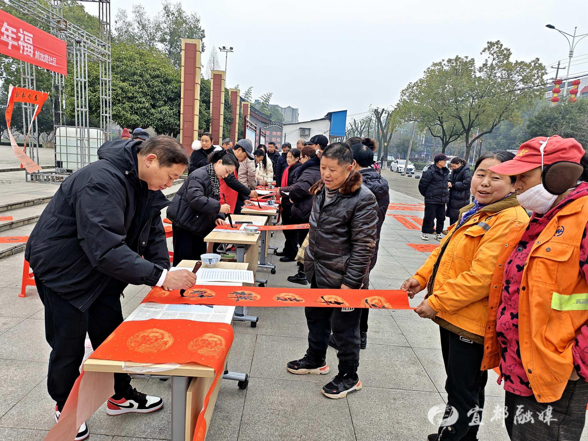 宜都融媒讯(通讯员 李桂容)腊月寒意浓,墨香暖人心。2月4日上午,枝城镇解放路社区“翰墨飘香迎新春,邻里共书马年福”写春联、赠春联活动在西湖公园温情上演。此次活动以弘扬中华优秀传统文化、营造喜庆祥和的马年新春氛围为初衷,深化社区“邻里家”服务体系,搭建邻里互动桥梁,进一步构建和谐友善、互助互爱的邻里关系,让居民在墨香中感受年味、凝聚温情。