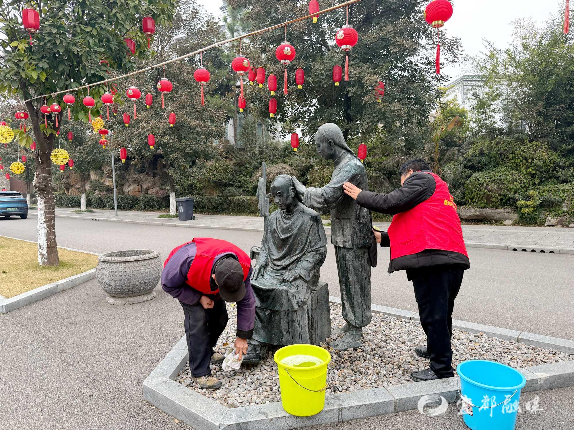 整治过程中,各方力量各司其职、各展其长:有的弯腰清扫主干道两侧的路面碎屑,有的徒手捡拾角落散落垃圾、搬运废弃杂物,有的合力清运堆积的生活垃圾,有的细心擦拭公共区域雕像,有的向过往群众宣传环境卫生知识,引导群众自觉参与家园整治。此次整治重点聚焦各村主干道两侧、公共活动区域等关键部位,同步全面清理路面散落垃圾、铲除墙体小广告,细致清理各类卫生死角,做到整治一处、干净一处、靓丽一处。