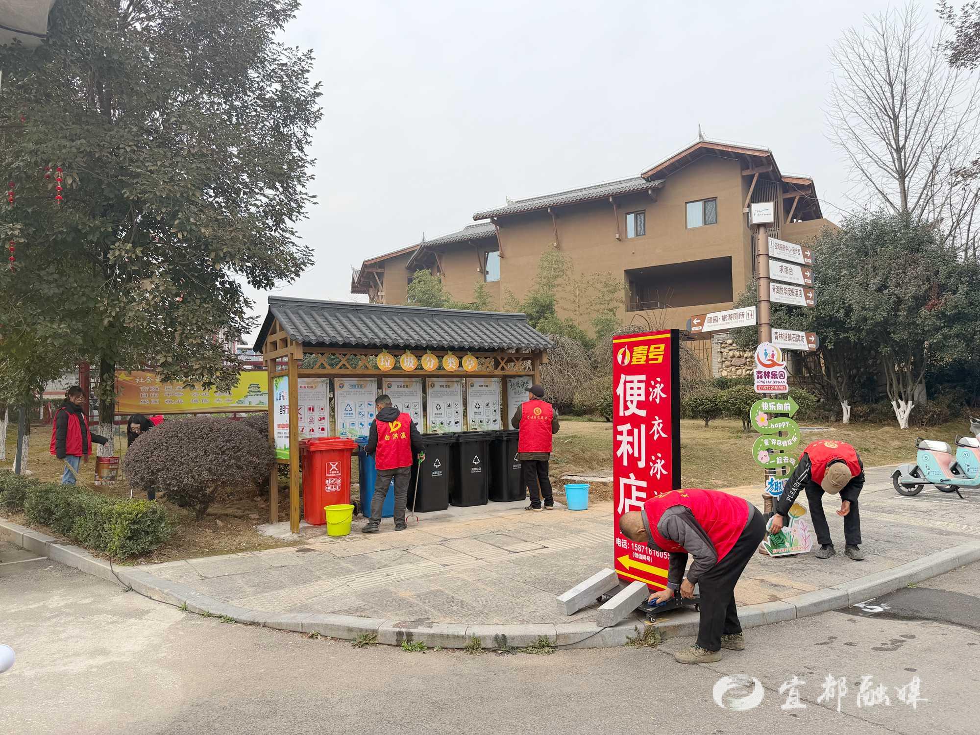作为牵头村,青林寺村立足全国乡村旅游重点村的示范定位,紧扣高坝洲镇“五整四美”专项行动要求,将整治触角延伸至每一个细节,主动统筹协调各参与单位,明确分工、凝聚合力,确保整治行动有序高效推进。青林康养公司积极履行社会责任,主动组织员工踊跃参与整治行动,重点助力提升景区周边环境品质,与各村形成了“村企联动、村村协同、全民参与”的良好整治氛围,各方力量充分发挥先锋模范作用,用实干践行责任担当。