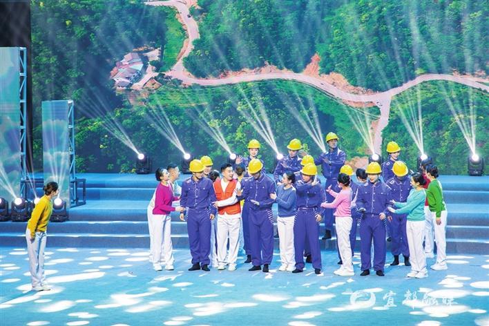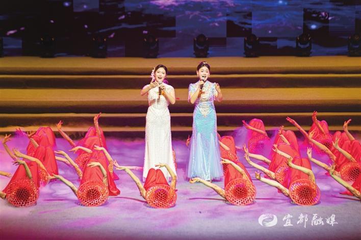 2月9日晚,2026宜都市春节文艺晚会在宜都大剧院精彩上演,15个节目涵盖了机器人舞蹈秀、音舞快板、本土原创歌曲、情景歌舞、音舞诗画等多种表演形式,绚烂的舞台效果也为观众带来沉浸式的艺术体验(图①、②、③、④)。晚会通过宜都市融媒体中心全程直播,近10万网友在线观看、参与互动,线上线下同频共振,凝聚起宜都人民同心筑梦的浓浓乡情。