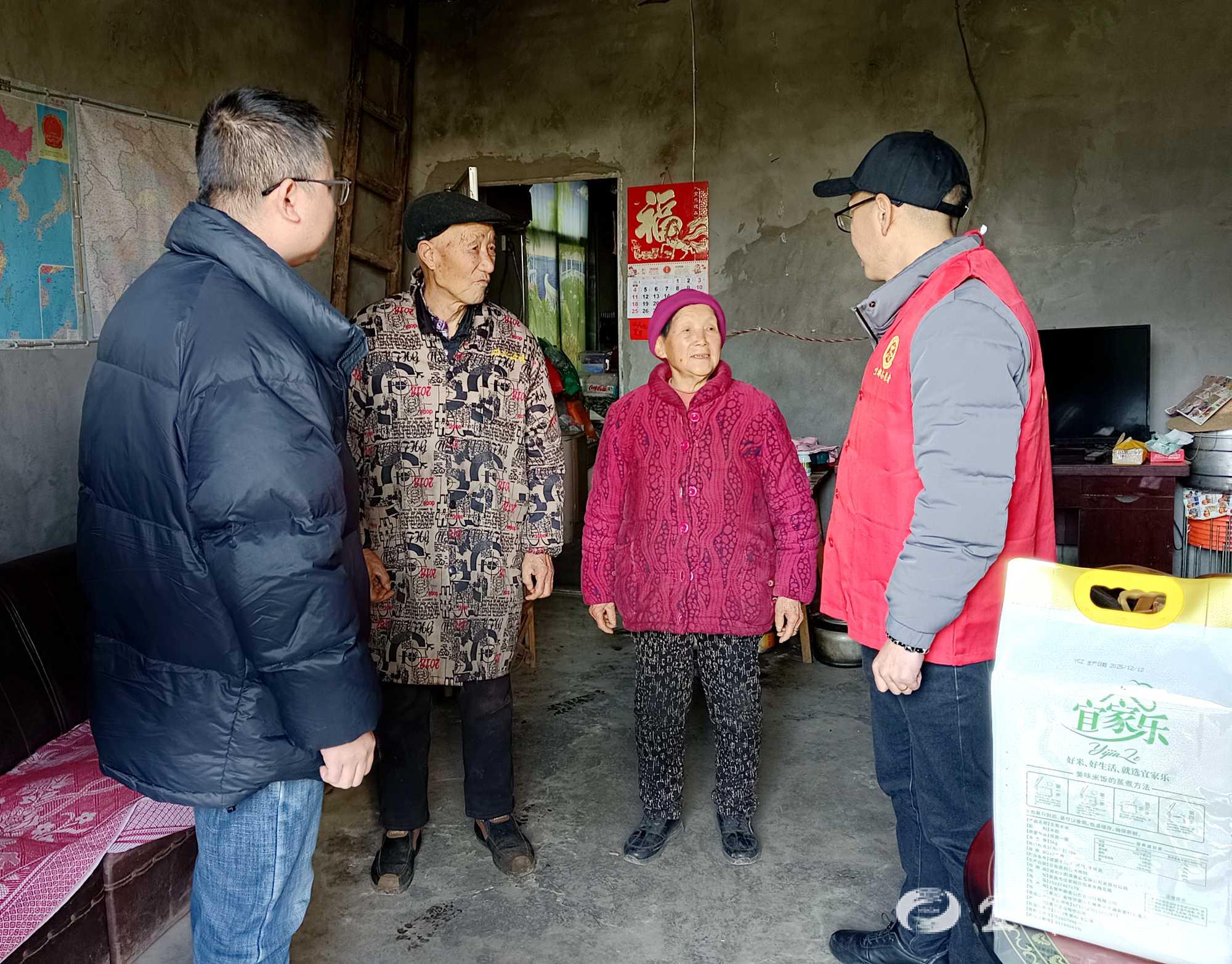 每到一户,志愿者都亲手将大米、食用油等慰问品送到群众手中,细致叮嘱群众做好冬季防寒保暖,注意用火用电安全,平安欢度新春佳节。“谢谢你们年年都记得我们!”受助群众连连致谢,一句句关切问候、一袋袋实用物资,既缓解了部分困难家庭的实际生活压力,也为他们送去了精神上的慰藉与支持。