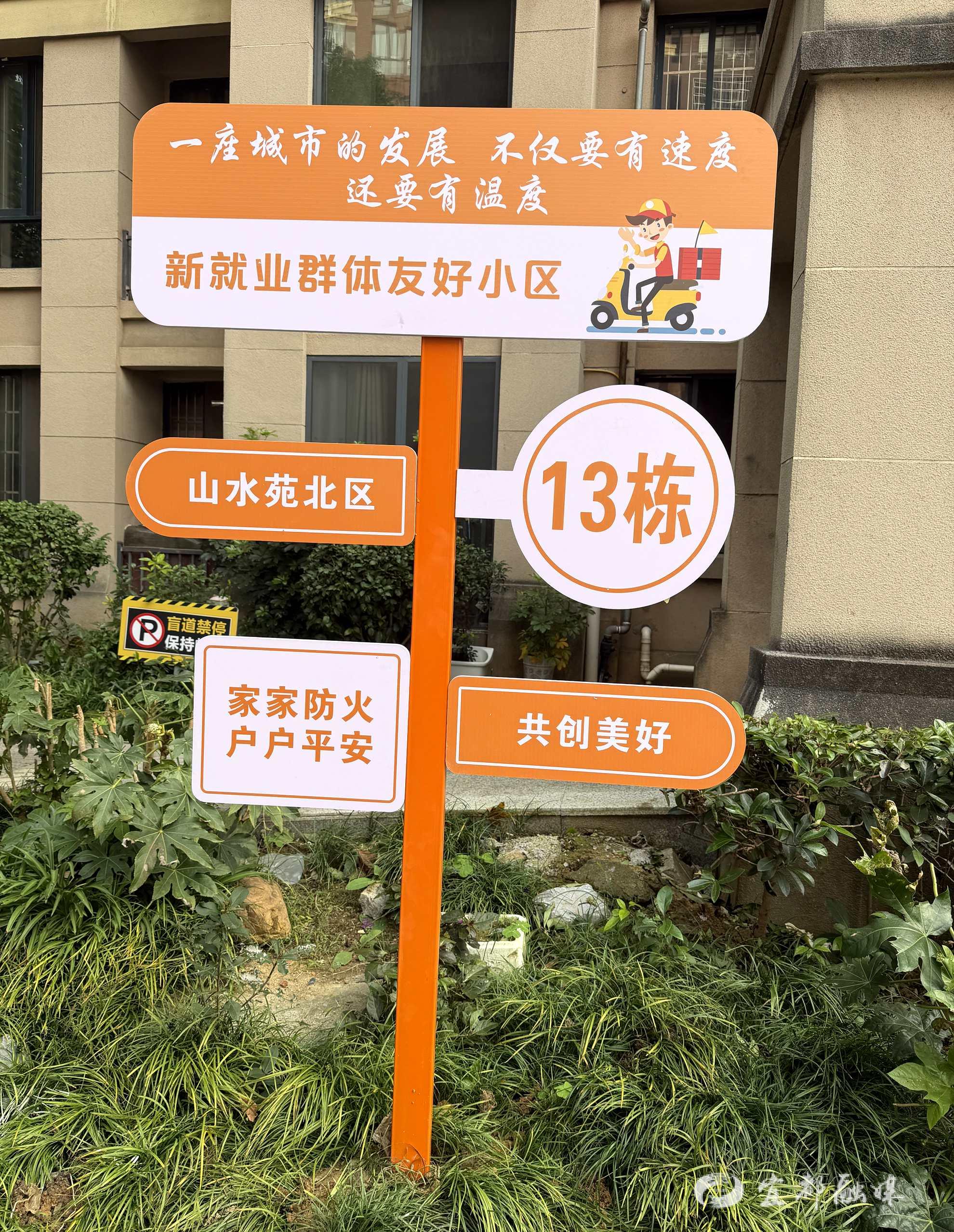 “一图导行”。针对配送过程中楼栋定位难、路线不熟悉的痛点,该社区在各小区主要入口增设“小区友好导示图”,优化内部配送路线指引,有效缩短配送等待时间,让小哥跑单更高效、更省心。