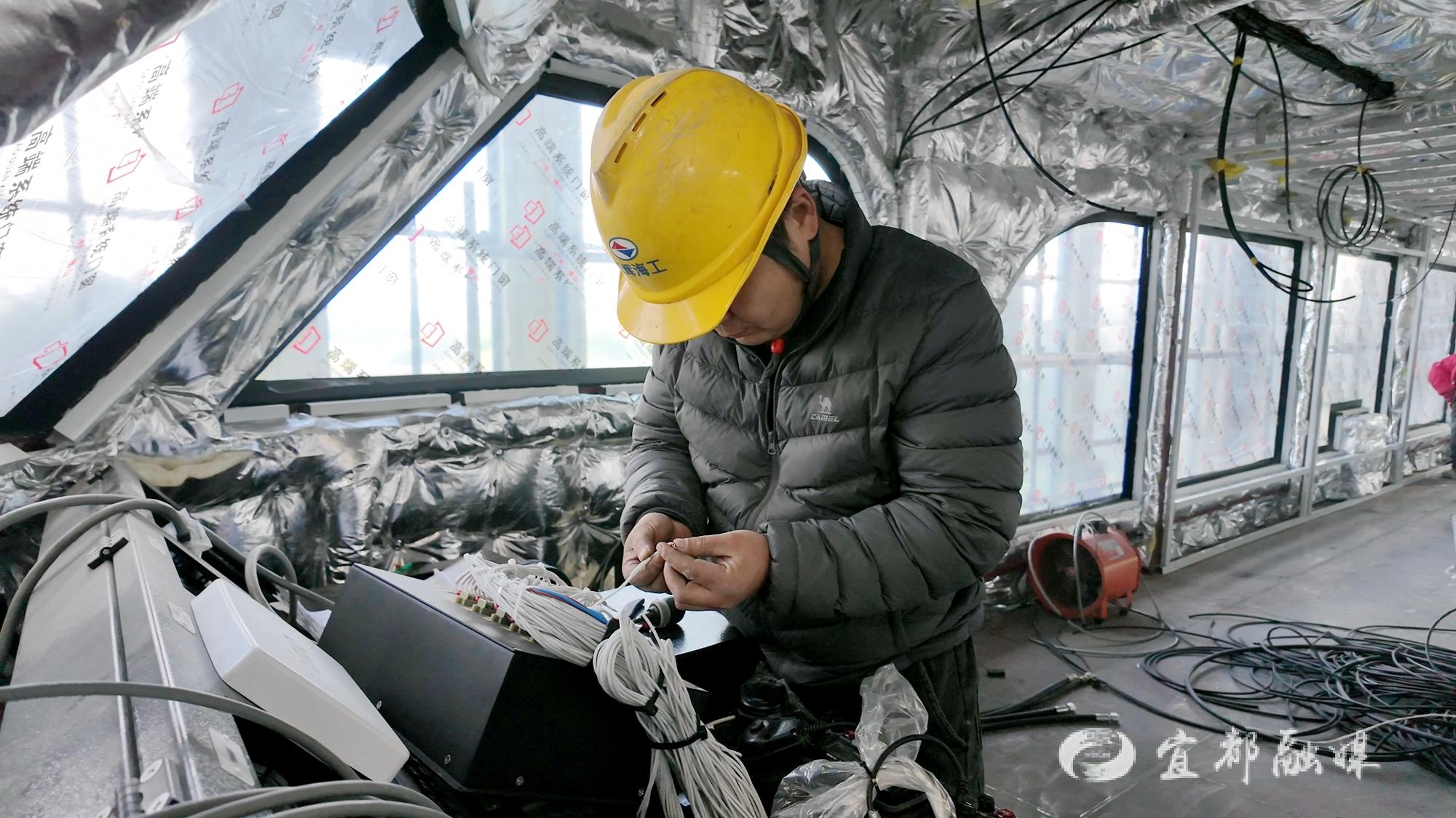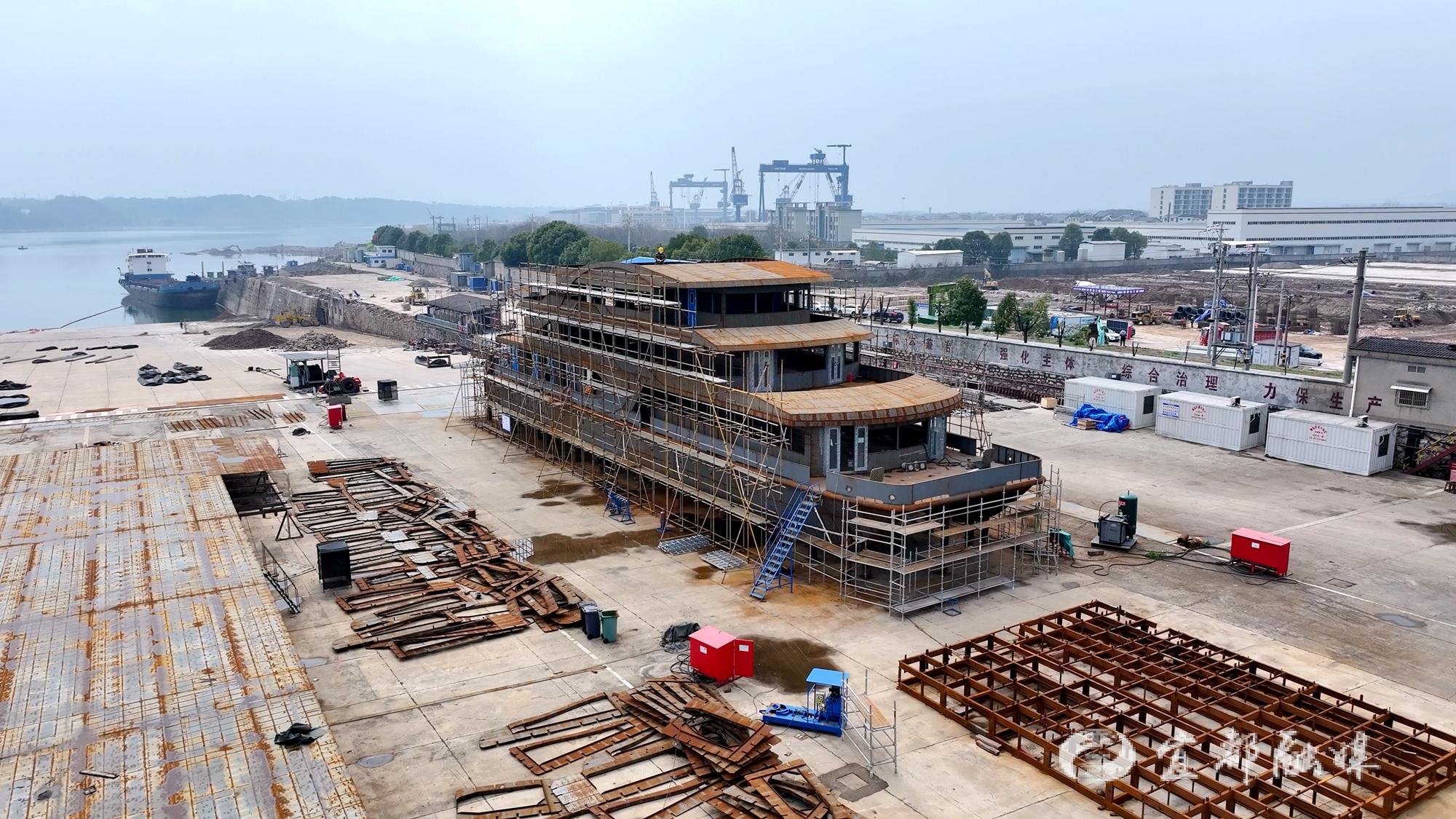 宜都融媒讯(记者 廖贤丹 王文强)3月3日,位于高坝洲镇的湖北江辉海工装备有限公司产业园内,一艘为神农溪景区量身定制的纯电动观光游船正加紧建造。项目团队抢抓工时,全力保障这一绿色智能船舶按计划于4月底交付。