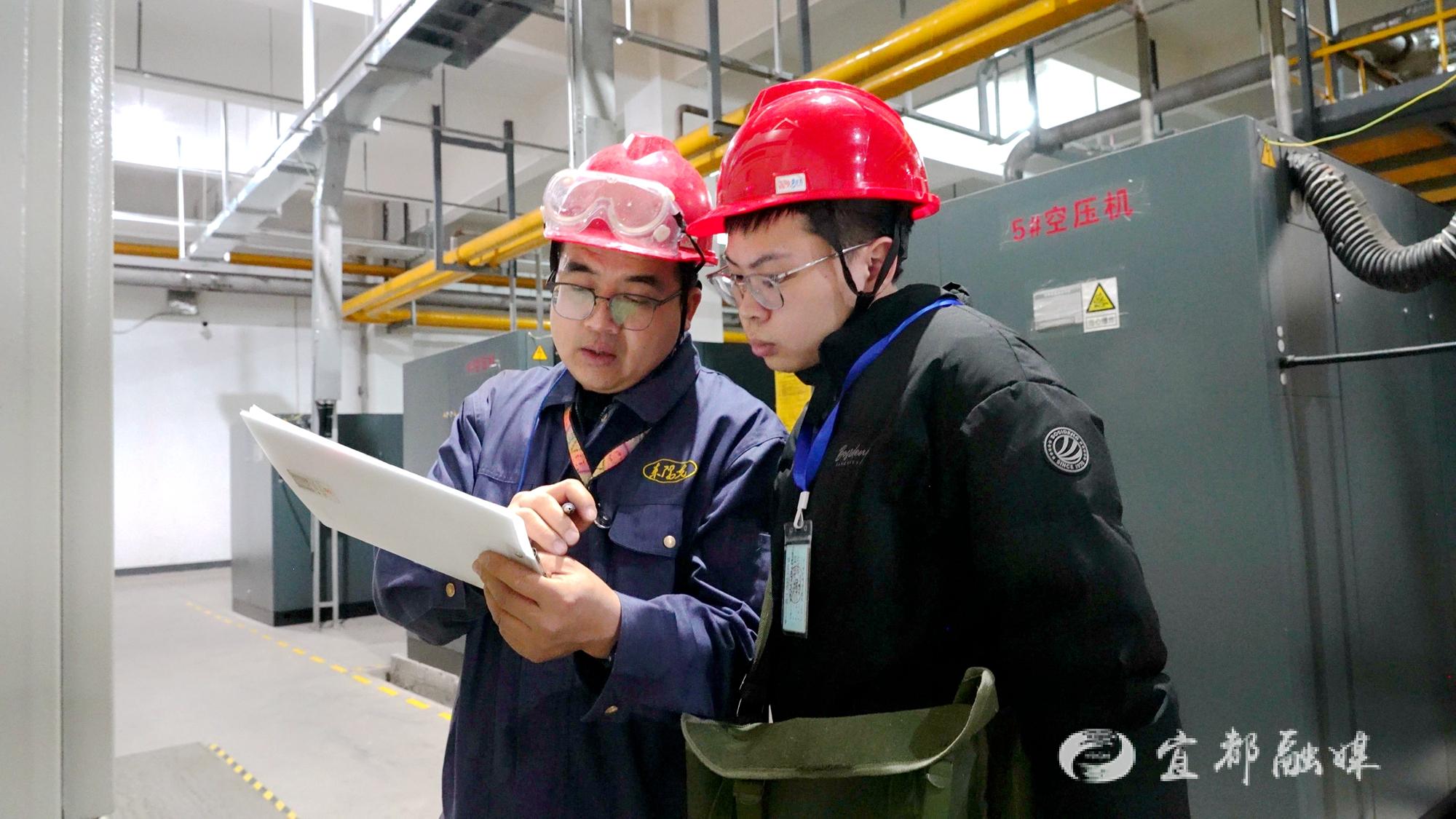 在企业另一侧的空压站内,同样是一片忙碌而有序的景象。今年即将毕业的大学生袁锦程,正跟着“师父”仔细进行动力柜巡查。角色的快速转变,让他对未来充满信心。