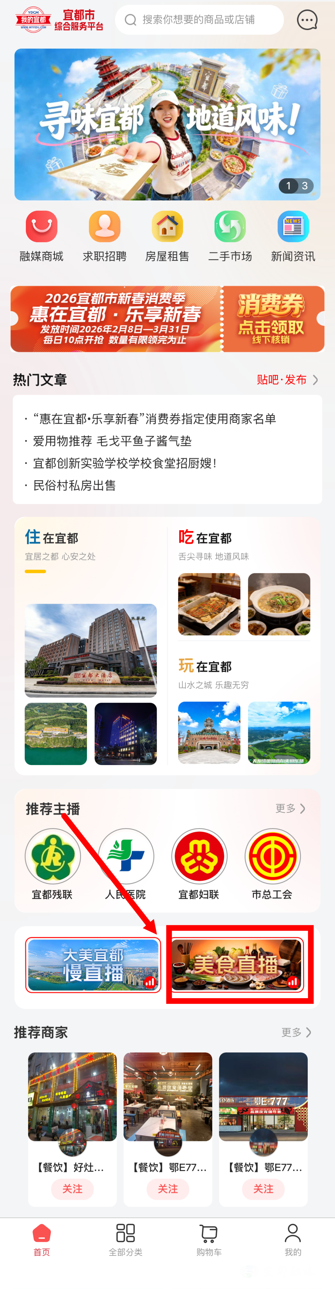 领券规则:3月11日15:00,锁定“我的宜都”美食直播间!