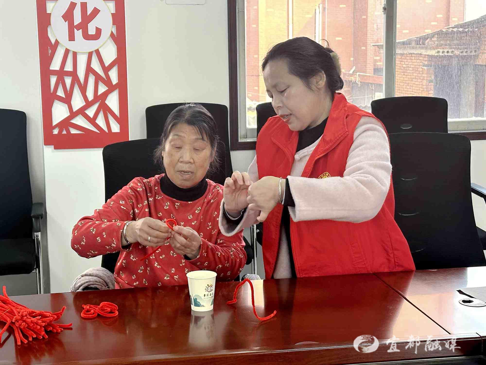 宜都融媒讯(通讯员 戴晨)“您看这样对折是不是更好?再缠绕几圈就更精致了。”3月12日上午,陆城街道清江社区活动室里,不时传来耐心细致的指导声。当天,该社区老年大学春季学期手工编织班正式拉开帷幕,十余位老年学员欢聚一堂,在指尖翻飞间解锁晚年新乐趣,绽放夕阳别样芳华。