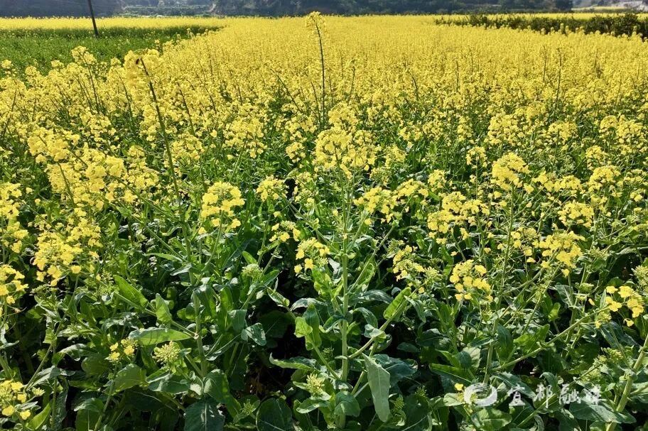 被金黄的油菜花点缀着