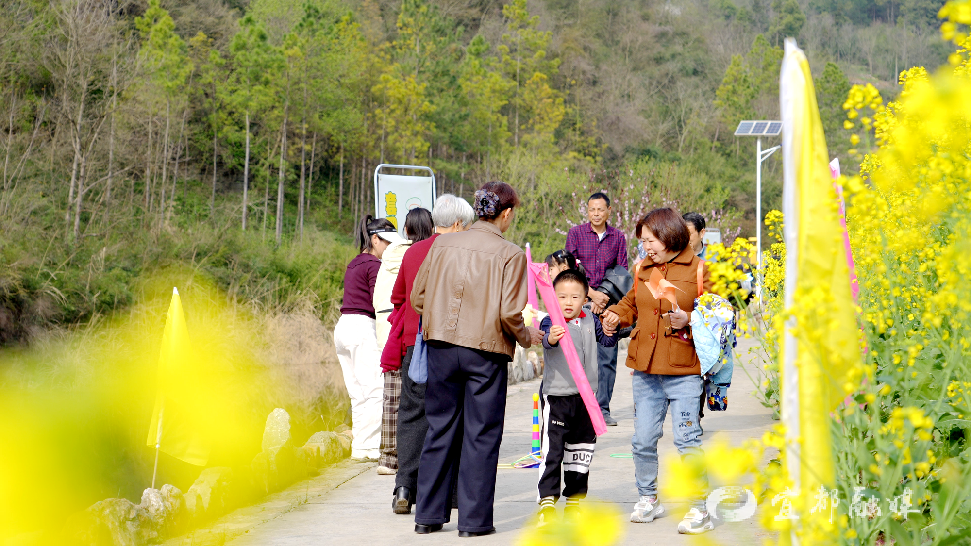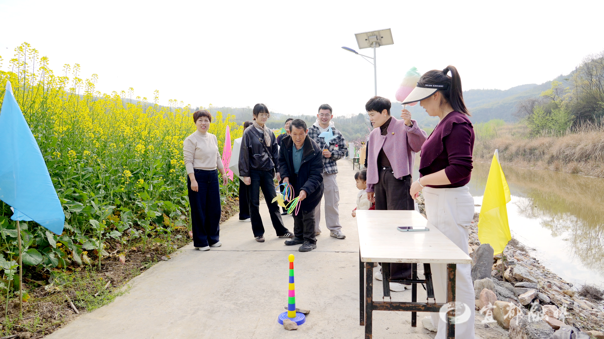 活动现场还设置了互动体验环节。放风筝主题活动中,游客通过“赏花令”打卡集齐印章,即可免费领取风筝,孩子们积极参与。农产品展示交易活动也同步举行,吸引众多游客驻足选购。