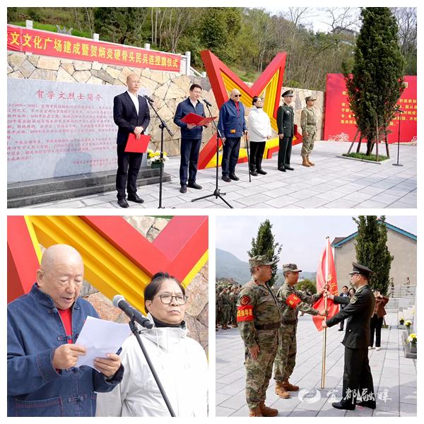 活动中,贺炳炎将军长子贺雷生深情讲述了父辈两代人的革命情怀。江競宣读贺炳炎硬骨头民兵连组建命令,60名民兵庄严宣誓。全体人员默哀并敬献花篮,瞻仰烈士雕像。