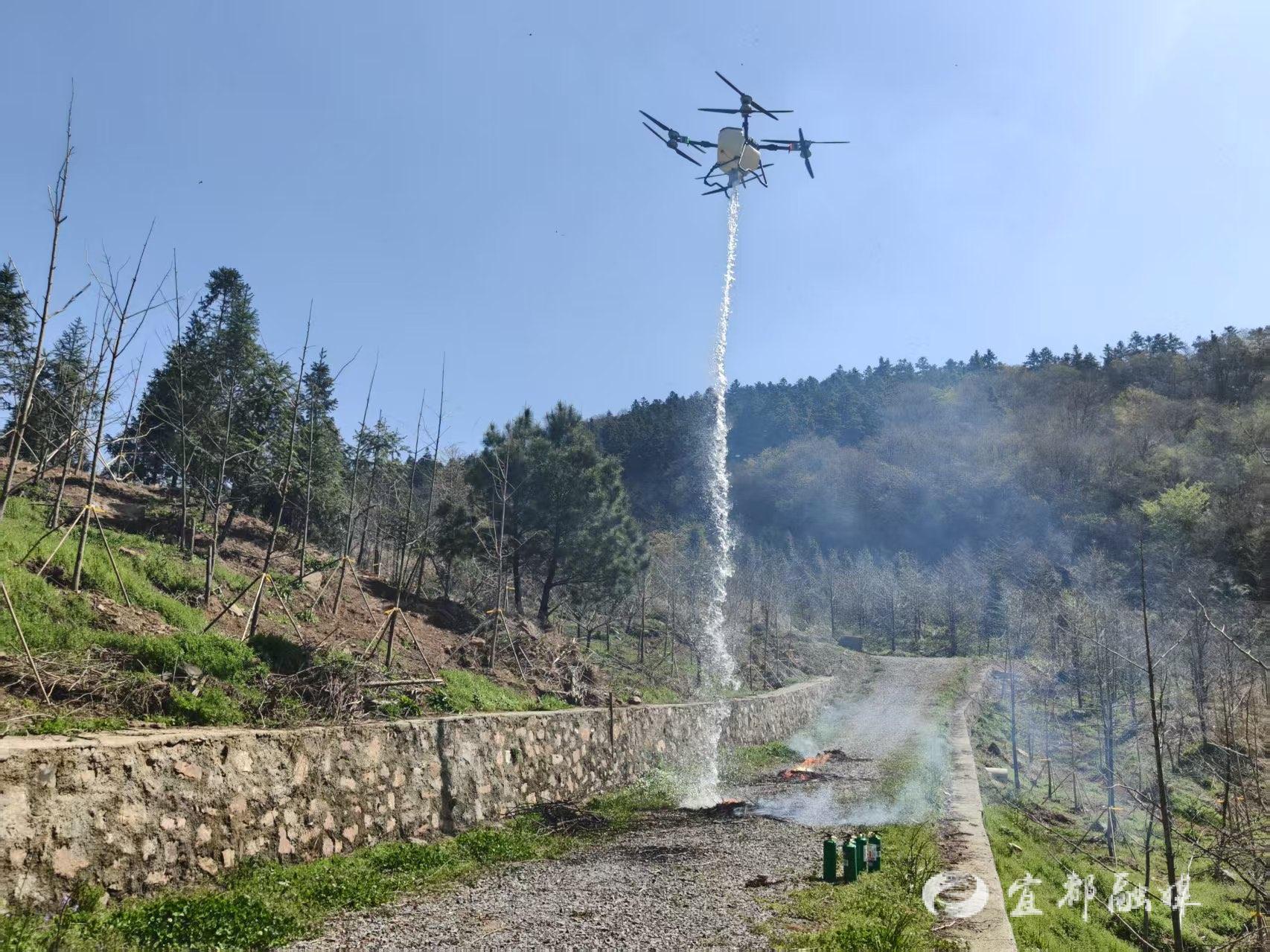 实战演练模拟游客违规用火引发火情,因林区风势较大,现场形成多处火点,传统扑打方式难以快速应对。演练利用无人机执行空中侦察与灭火任务,充分发挥其载重大、机动性强的优势,对多处火点实施精准空中压制,快速控制火势。地面队伍随即跟进清理,空地协同作战,圆满完成火情早期处置任务,成功控制火情,消除复燃隐患。