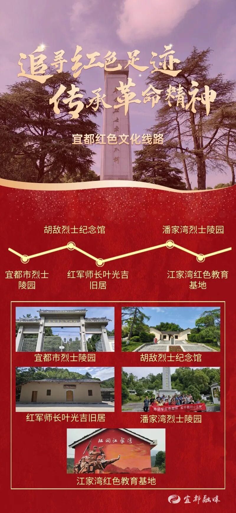 🔴宜都市烈士陵园→胡敌烈士纪念馆→红军师长叶光吉旧居→潘家湾烈士陵园→江家湾红色教育基地