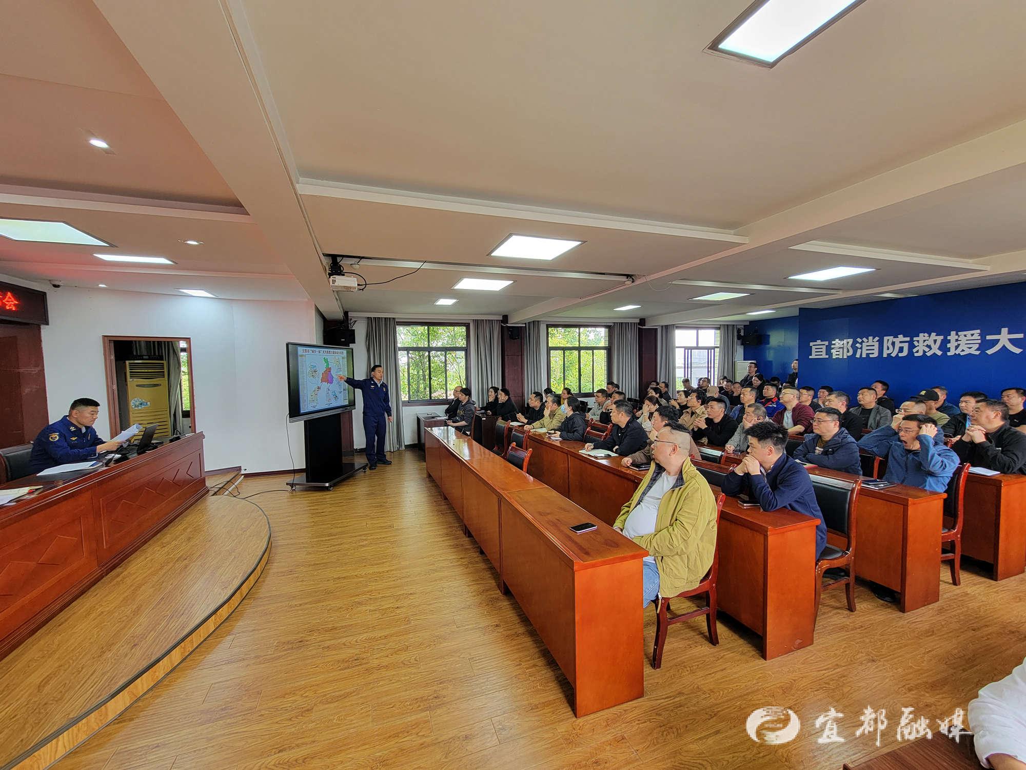 宜都融媒讯(通讯员 谢雷)为全面夯实基层消防基础,提升城乡协同灭火救援实战能力,4月10日,宜都市消防救援局组织开展宜都市“城乡一体”灭火救援力量体系建设联席会、集中战评复盘及现场实地指导系列活动。全市乡镇专职消防队、企业单位微型消防站负责人共计130余人参会。