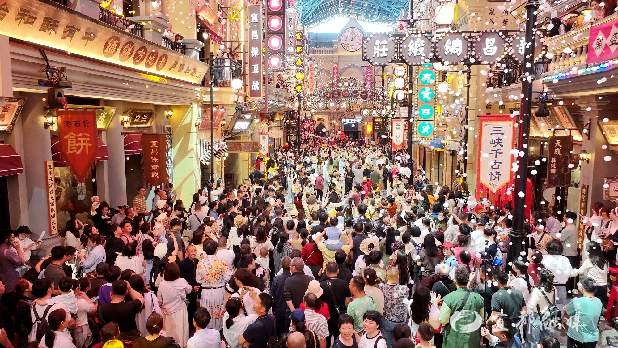 除了探秘剧情,古今碰撞的潮玩互动更是点燃了游园激情。《穿越快闪》《空城弦音》《西域公主》等节目轮番上演,好戏连台。大型歌舞《三峡千古情》在探营期间依旧精彩上演,通天地,越古今,为游客呈现了一场兼具文化底蕴与视觉震撼的演艺盛宴。