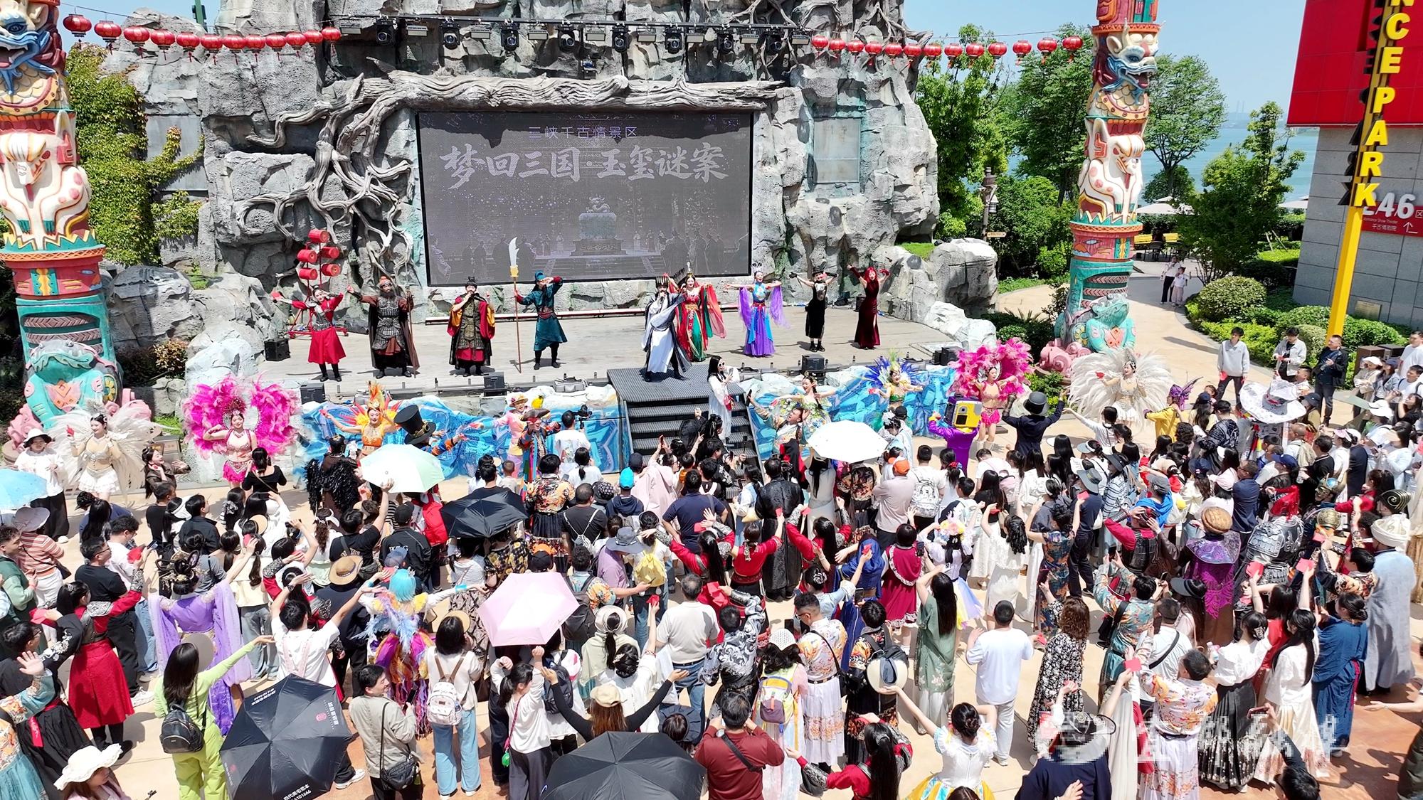 宜都融媒讯(记者 熊婷婷 江传堃)一江春水载花影,千古风情入画来。4月18日,三峡千古情景区春季主题活动开放探营,以“三国文化”为核心,深度融合历史底蕴与潮流玩法,免费提供换装服务,让游客换装入园、沉浸式参与,这场集探秘、观赏、互动于一体的文旅活动将持续到“五一”假期。