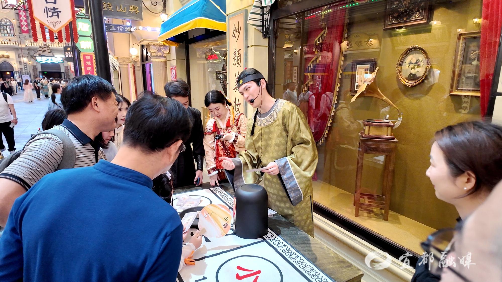 游客杨露露满脸笑意地说:“我是从外地过来的,一路上感觉这边风土人情跟我们那边还是挺不一样的。这里面都还挺好玩的,跟NPC互动也挺有趣的。”