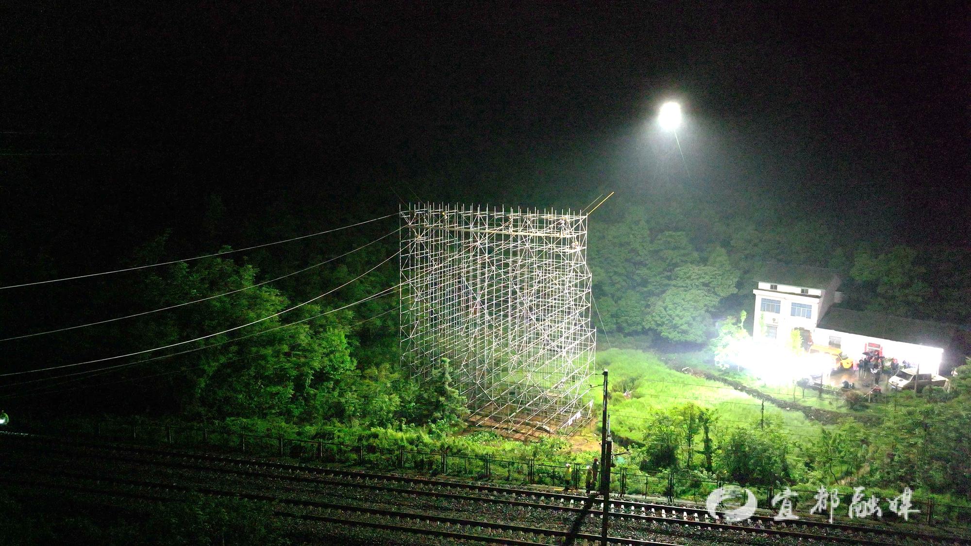 宜都融媒讯(记者 王留铭 江传堃)4月21日晚,宜都供电公司抢抓夜间“窗口期”实施110千伏青园线跨越焦柳铁路封网作业。
