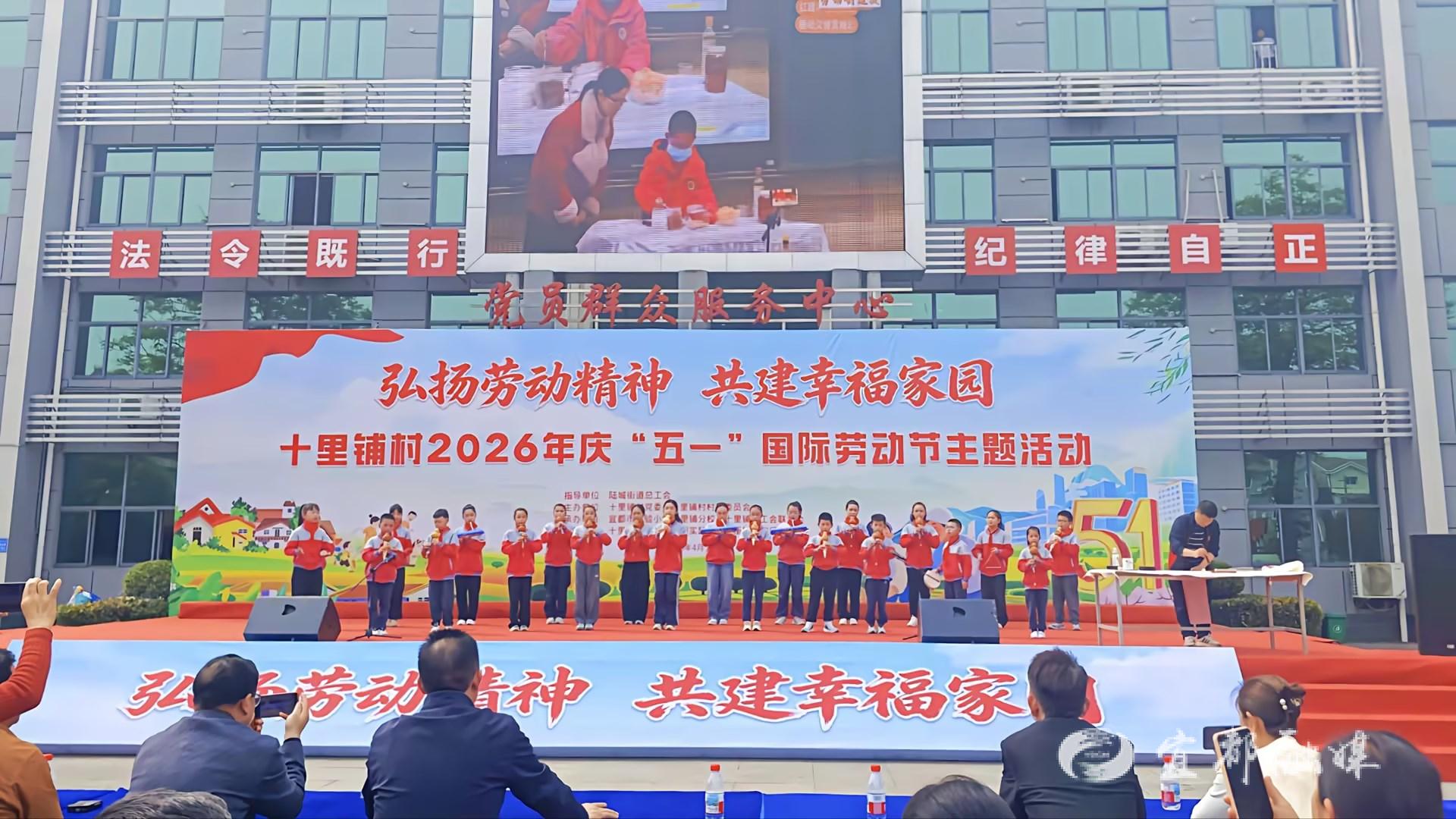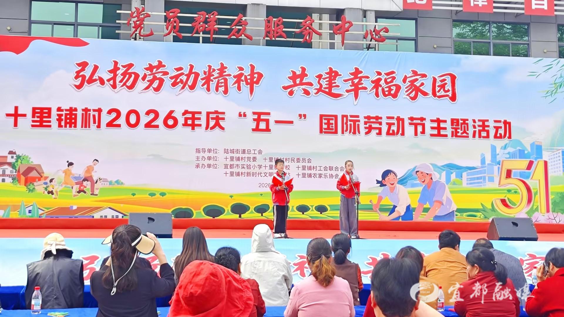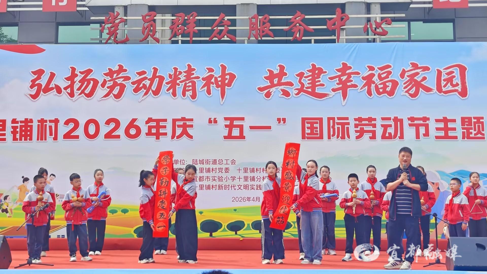 宜都融媒讯(通讯员 彭高峰)为喜迎“五一”国际劳动节,传承弘扬劳动精神,搭建校村共建育人桥梁,深化校村协同育人成效,4月27日,市实验小学十里铺校区组织学生代表,积极参与十里铺村委举办的“弘扬劳动精神,共建幸福家园”庆“五一”文艺活动,学子们以青春风采登台献艺,致敬每一位平凡劳动者,传递劳动最美的时代理念。